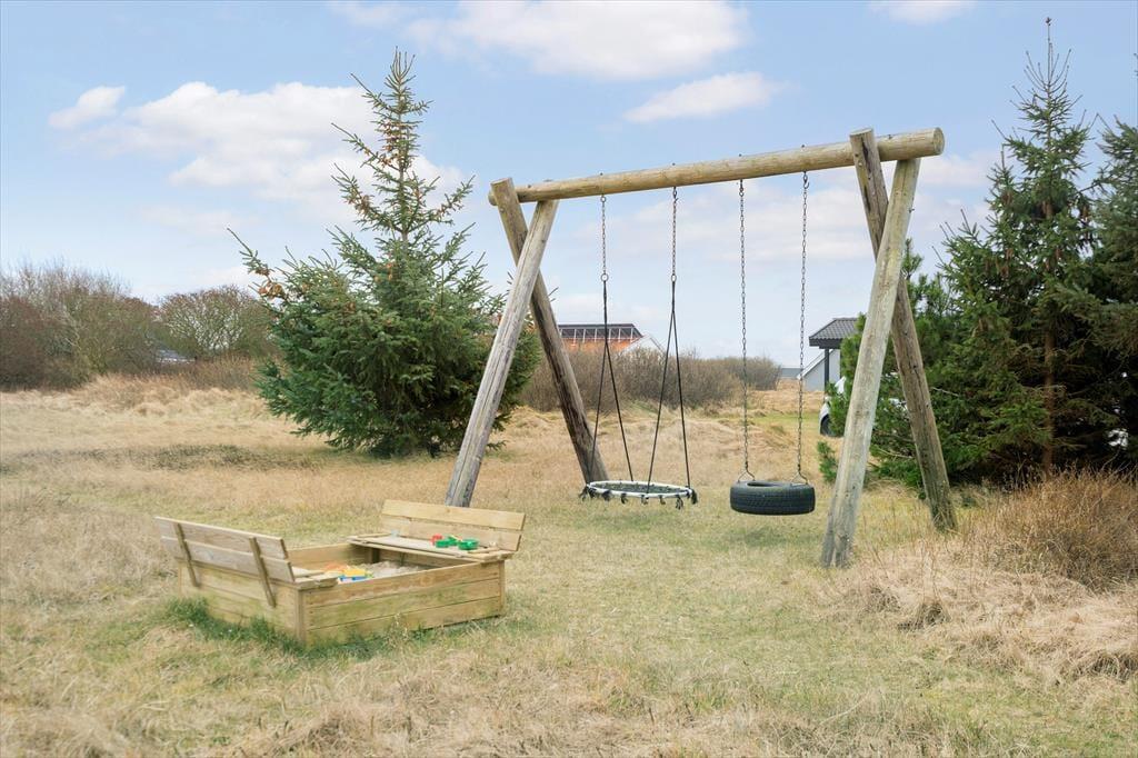 Fra sommerhusets tre soveværelser har I direkte adgang til terrasserne, og der er selvfølgelig også havedør i opholdsafdelingen, så det er nemt at rykke driverlivet ud i solen. Der er terrasseområder mod både øst, syd og vest, så der er rig mulighed for at finde en dejlig opholdsplads med læ og sol. Beplantningen skærmer grunden delvist af, og med gynger, sandkasse og en mindre fodboldbane med mål er udearealerne perfekt til børn i legehumør.