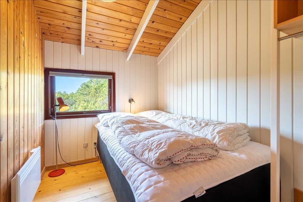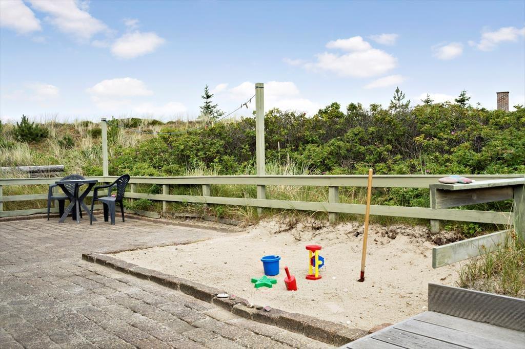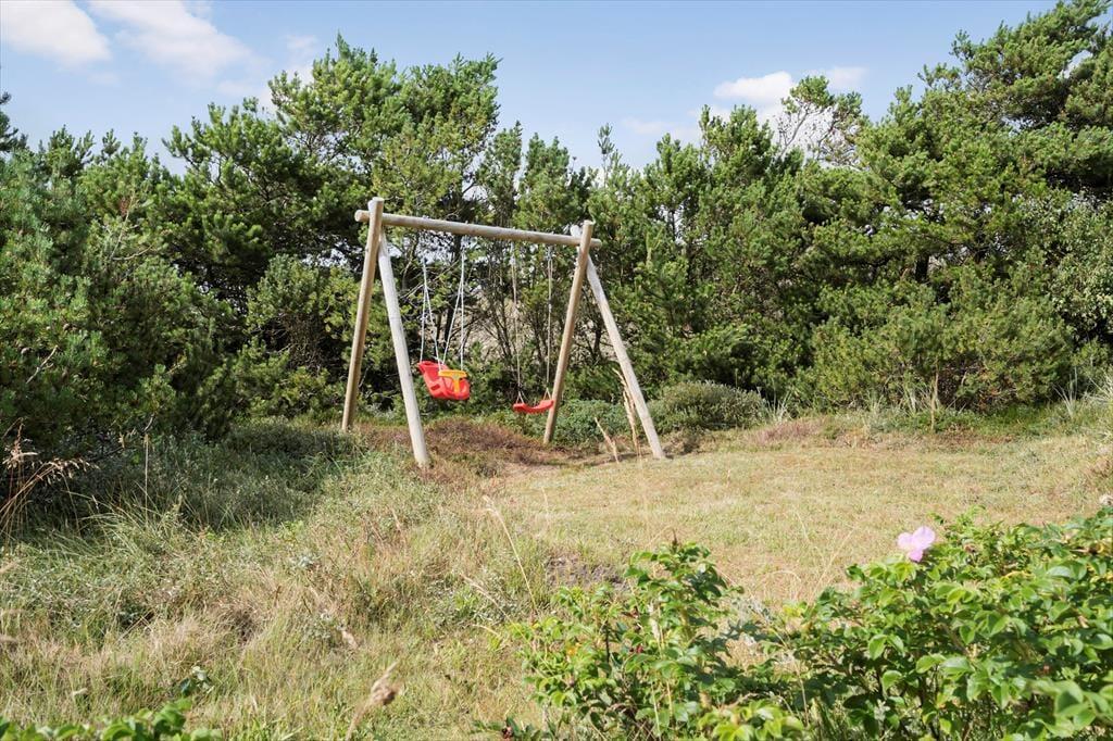 Sommerhuset ligger fredeligt og naturskønt i bunden af den lukkede vej Lyngen. Til fods tager det kun cirka fem minutter at gå til den anden ende af vejen, og herfra kan I fortsætte videre over klitterne, hvis I vil helt ned på Søndervig Strand for at lege i sandet eller plaske i Vesterhavets bølger. Lidt længere mod nord venter Søndervigs bymidte, hvor I kan ose i butikker, gå på restaurant eller prøve sjove ferieaktiviteter som minigolf og segway. Et godt tip er at leje eller selv medbringe cykler, for området er kendt for sine gode cykelruter og naturskønne omgivelser. For eksempel kan I tage på en herlig udflugt ned ad Holmsland Klit med kurs mod Lyngvig Fyr eller fiskerbyen Hvide Sande.
