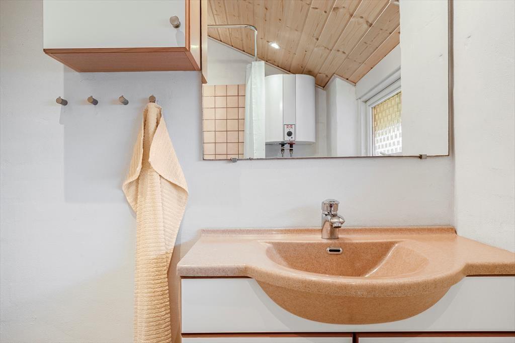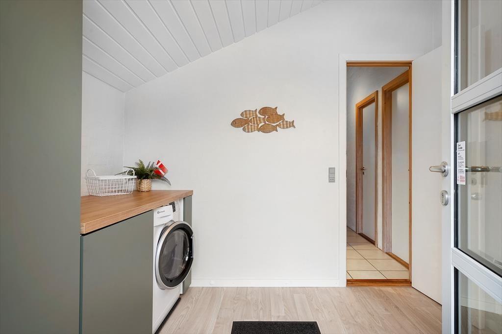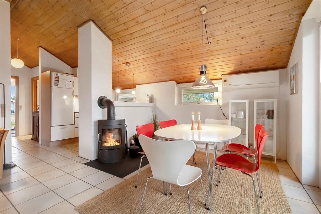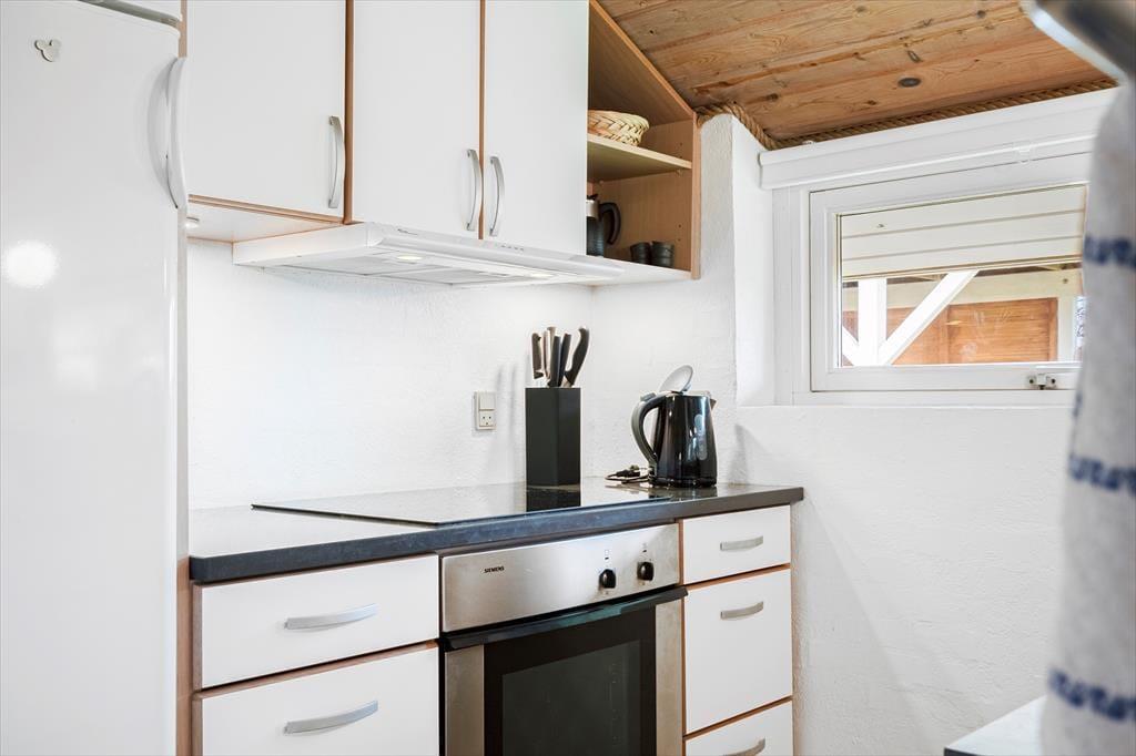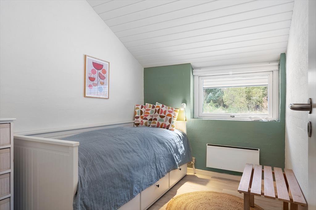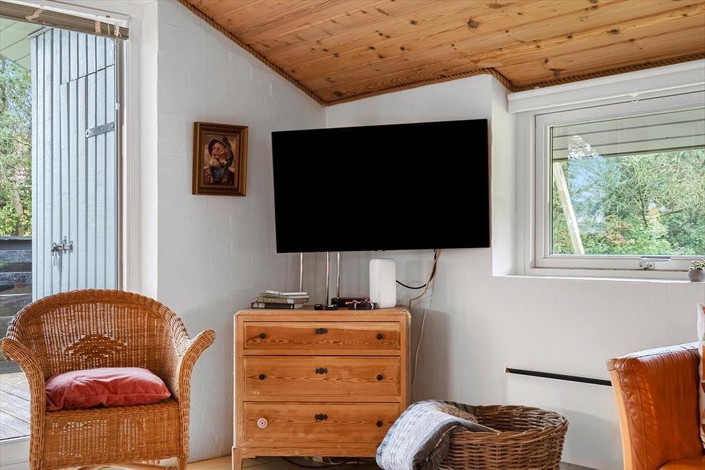 Indenfor bliver I mødt af en lys og imødekommende indretning, hvor stue og køkken går op i en hyggelig helhed. Det åbne alrum gør det let at være sammen, uanset om der kokkereres ved køkkenbordet eller hygges i sofaen med udsigt til naturen gennem de store vinduespartier. Her får I en følelse af at være midt i det grønne, selv når I sidder indenfor. Sommerhuset er flot vedligeholdt, hvilket tydeligt mærkes i den rare atmosfære, der indbyder til ro og feriestemning.