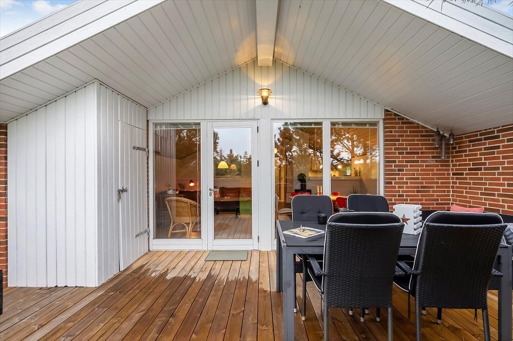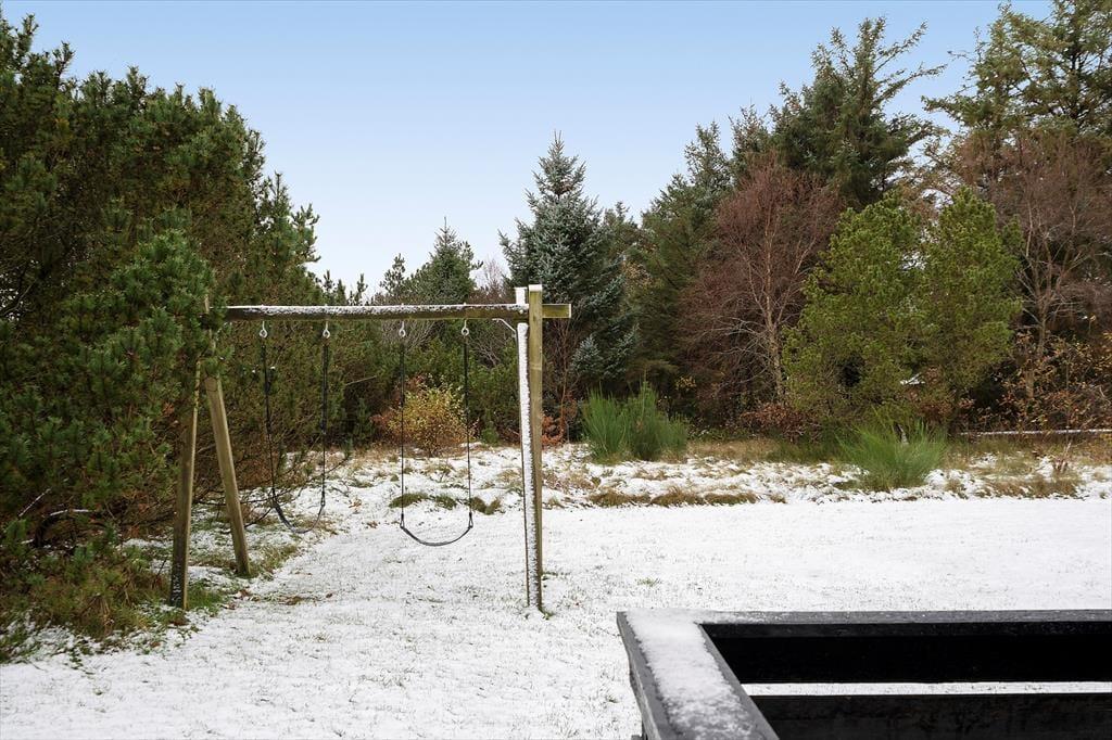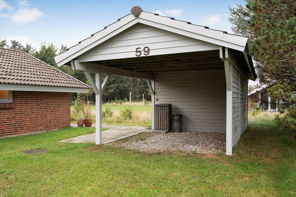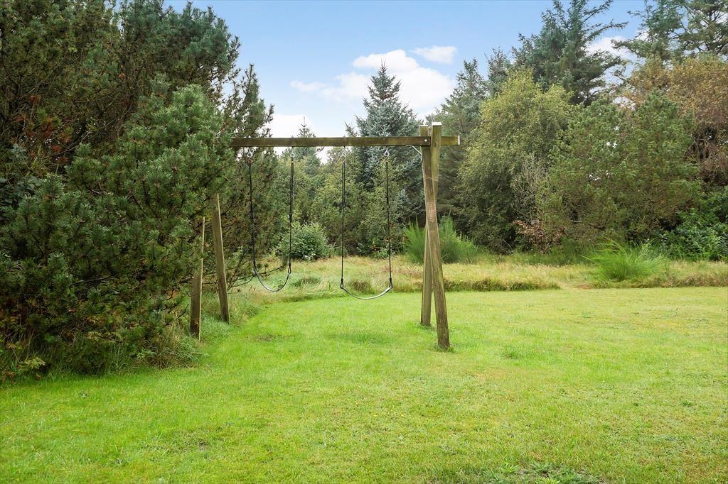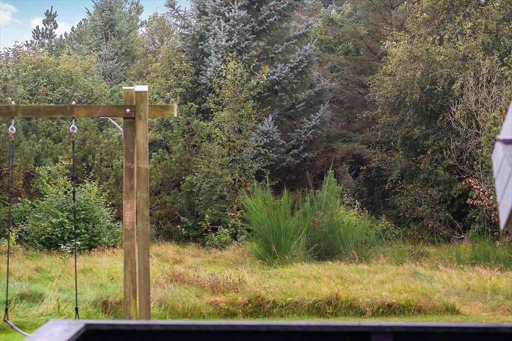 Sommerhusets terrasse er et oplagt samlingspunkt, hvor loungemøbler og havemøbler giver mulighed for både afslapning og feriemåltider under åben himmel. En del af terrassen er overdækket, så I altid kan finde en plads i ly for solen eller let sommerregn. Børnene kan more sig på gyngestativet i haven, mens bilen kan stå sikkert og skyggefuldt i den overdækkede carport. Den rolige beliggenhed betyder, at I kan læne jer tilbage og nyde fuglesangen, mens ferien folder sig ud i eget tempo.