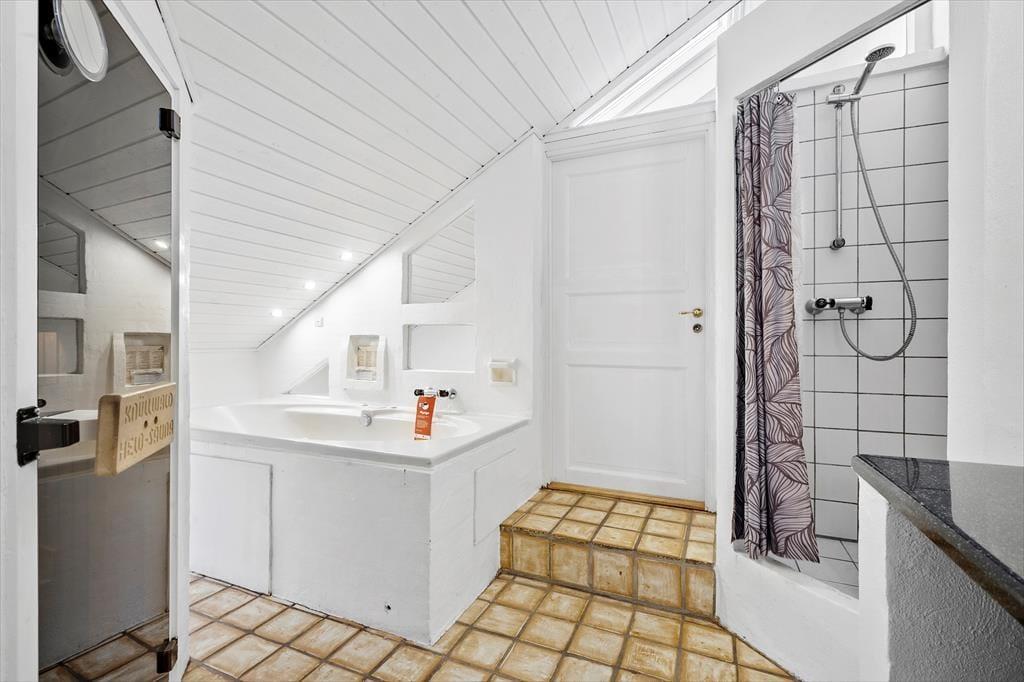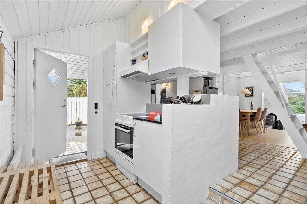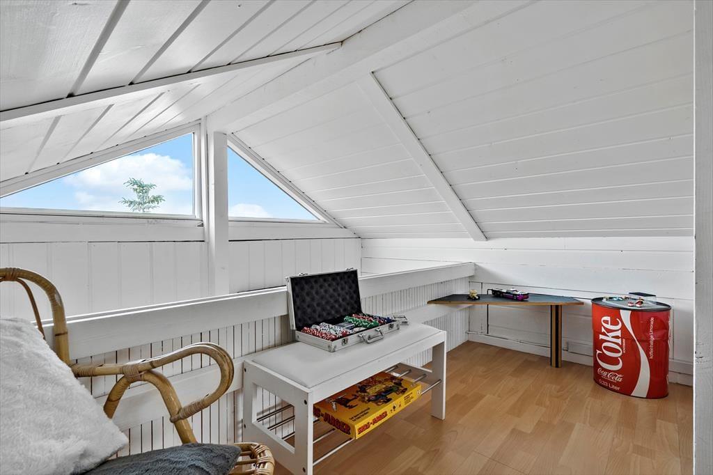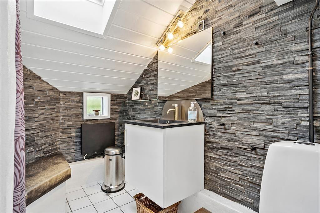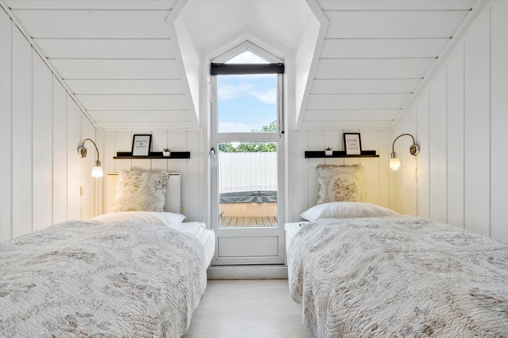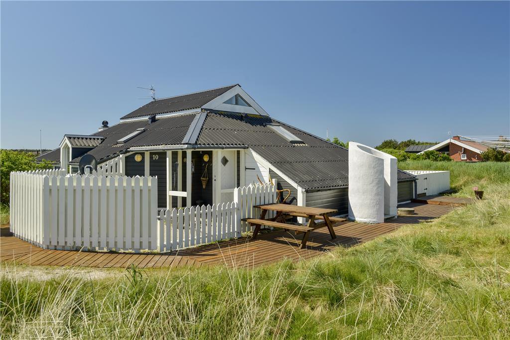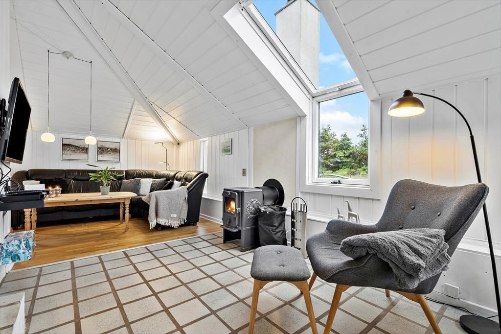 Et skønt lysindfald, en spændende planløsning i flere niveauer samt spabad og sauna på det ene badeværelse. Det er et udvalg af alle kvaliteterne, som dette charmerende sommerhus byder på inden døre. På terrassen finder I en lækker udespa, så selvom Søndervig Strand kun er en kilometer væk, kan I også bade hjemme på ferieadressen.