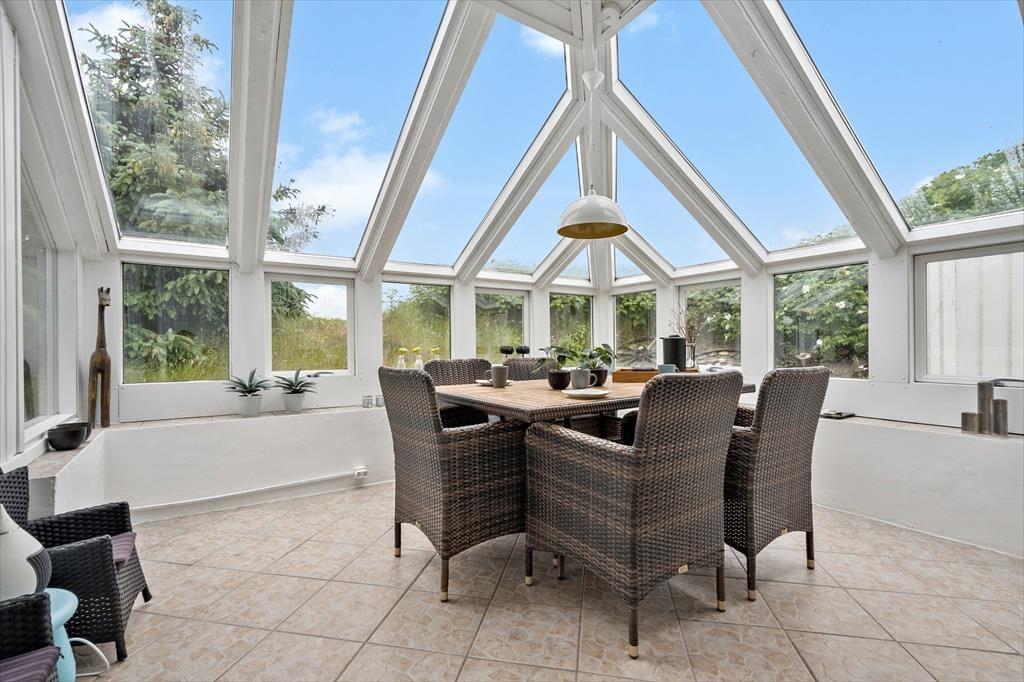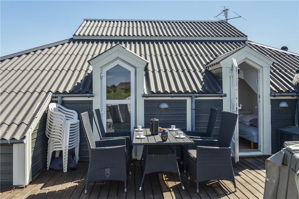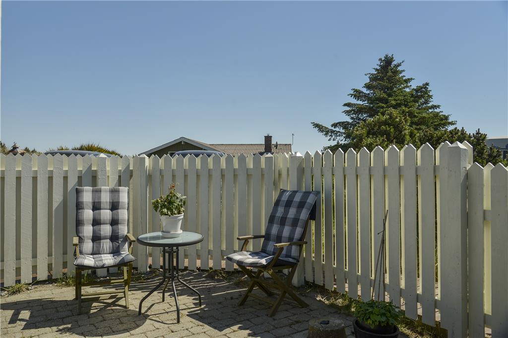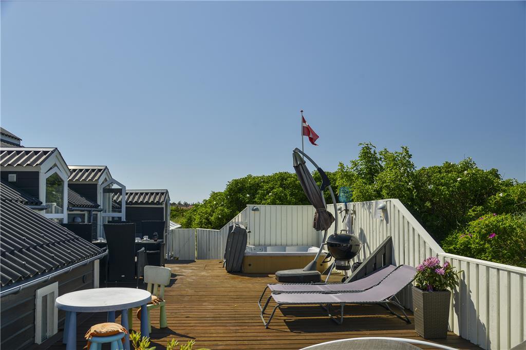 Hele vejen rundt om huset finder I flere skønne terrasser og lækroge, og derfor kan I altid finde en dejlig opholdsplads uanset tidspunktet på dagen. To terrasseområder er helt aflukkede, så hvis I har små børn eller en hund med på ferie, kommer de ikke til at forvilde sig væk, men kan hygge sig i trygge rammer. Til børnene er der et gyngestativ på naturgrunden, og på den vestvendte terrasse står et lækkert 38 graders standvandsspabad, der forlænger udelivet om aftenen såvel som i ydersæsonerne.