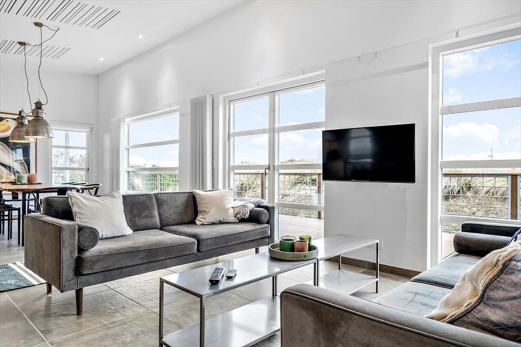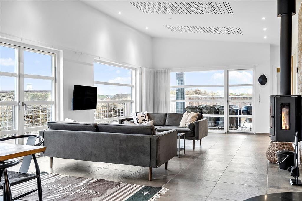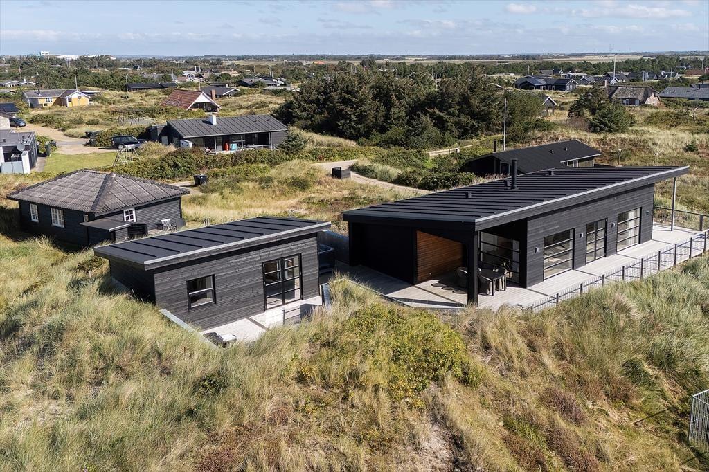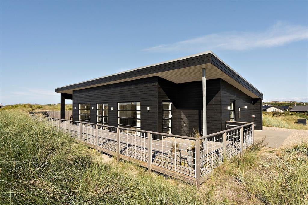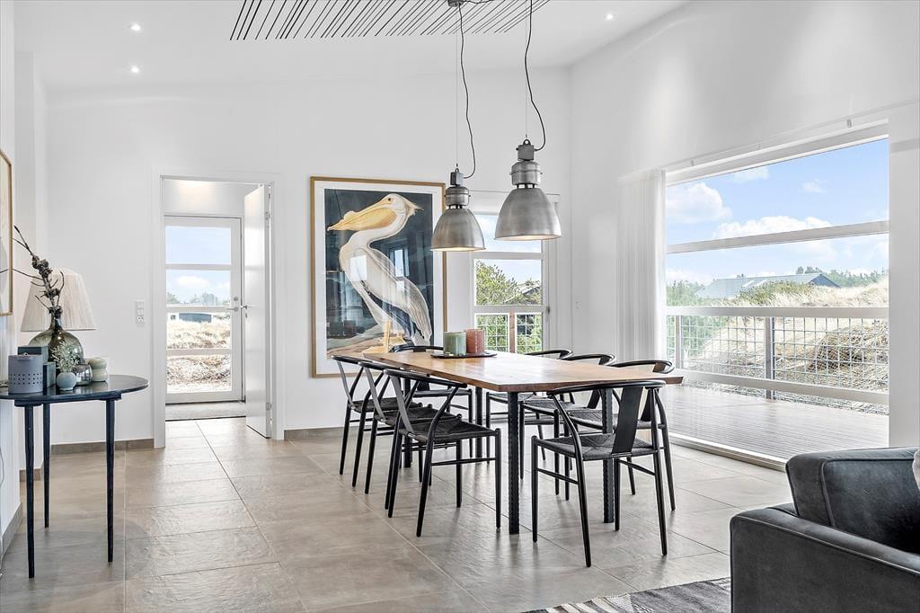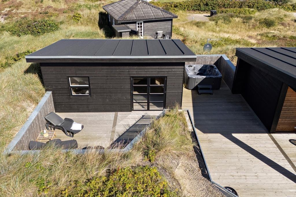 Hvis I sætter pris på flot design og lækre boligløsninger, vil I med garanti falde for dette store sommerhus på Hjelmevej nær Søndervig Strand. Her kan I holde ferie i stilfulde og luksuriøse rammer – også ude i det fri, hvor der står et lækkert spabad på terrassen.