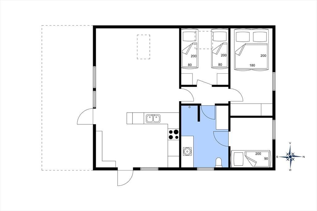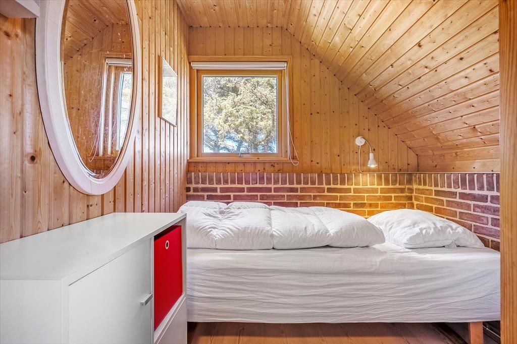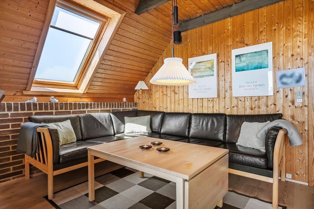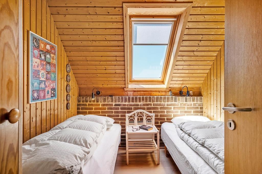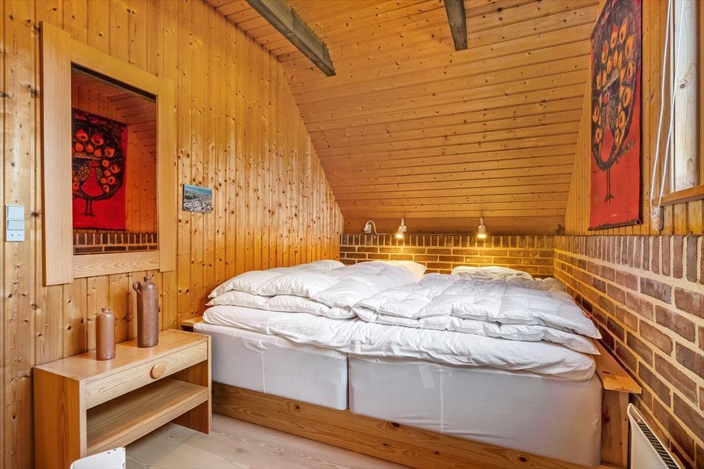 Når I træder ind i sommerhuset, mødes I af en lys og indbydende atmosfære. Huset har netop fået en lækker opdatering med nye gulve i 2025, og det giver boligen et frisk og moderne udtryk, samtidig med at den oprindelige sommerhusstemning bevares. Trævæggene og loftets synlige bjælker sætter en hyggelig ramme om ferien, og indretningen er enkel og hjemlig, så I hurtigt føler jer tilpas. Køkken og stue er forenet i ét fælles opholdsrum, hvor både madlavning, måltider og hyggestunder kan nydes sammen. Sæt jer godt til rette i sofaen med en kop kaffe, find yndlingsfilmen frem på fladskærmen eller nyd en stille stund med en god bog – måske med døren åben ud til terrassen, så I kan høre mågerne skrige og mærke den friske luft strømme ind. De tre soveværelser fordeler sig praktisk rundt i huset, og især det ene værelse, som er lidt adskilt, kan være et hit hos den teenager, der gerne vil have lidt privatliv.