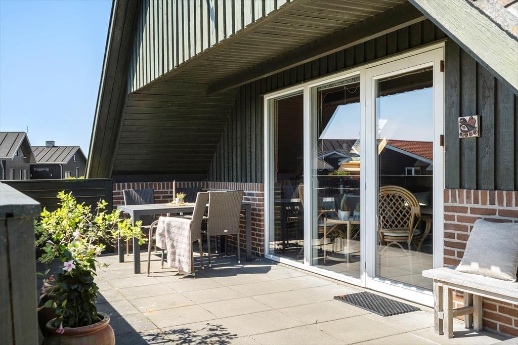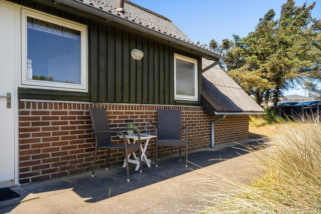 Det første, man lægger mærke til udenfor, er den solrige og afskærmede terrasse, der nærmest føles som en privat gårdhave. Her kan I slappe af i liggestolen med sol på næsen, dække op til morgenmad i det fri eller nyde lange sommeraftener med grillmad og latter i skumringen. Den sydvendte placering sikrer masser af lys, og når I ønsker læ eller skygge, er det altid muligt at finde en passende plads. Den lille græsplæne indbyder til leg for familiens yngste, og i det aflåste skur kan I opbevare cykler, strandgrej eller måske en fiskestang. En ladestander 100 meter fra huset gør det nemt at lade elbilen. Og som en særlig detalje er der en lille, næsten hemmelig havelåge, der fører jer direkte mod Søndervigs hyggelige centrum.
