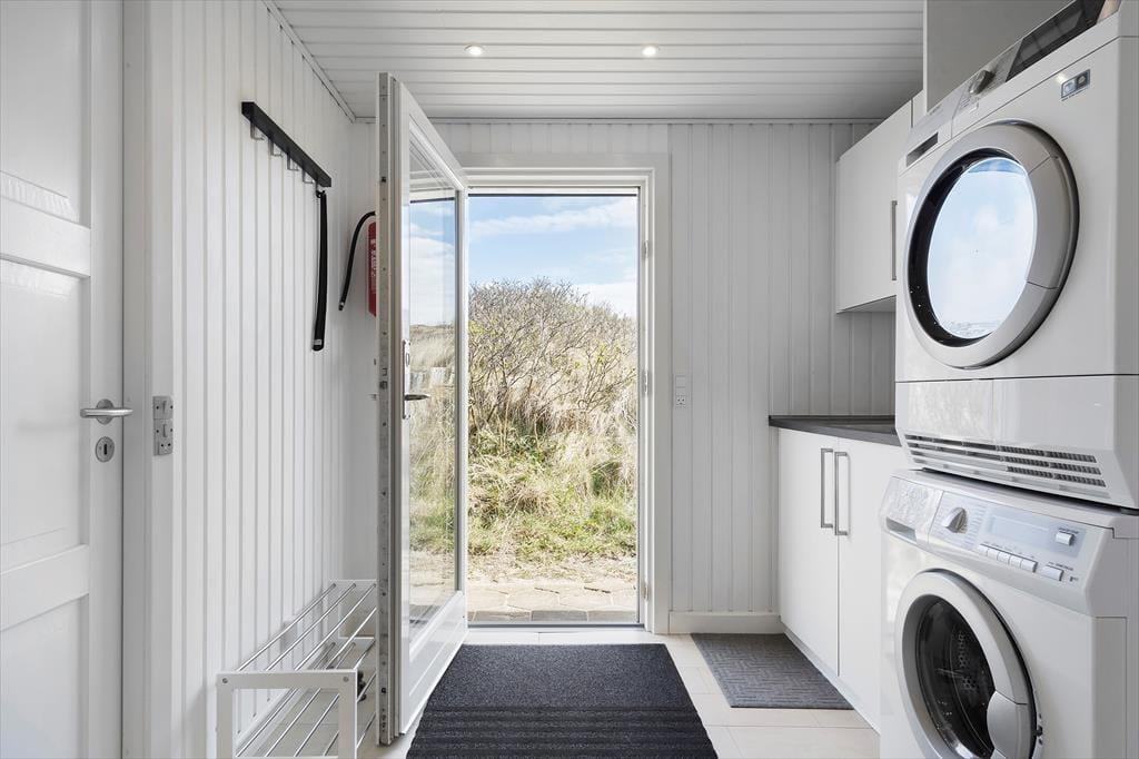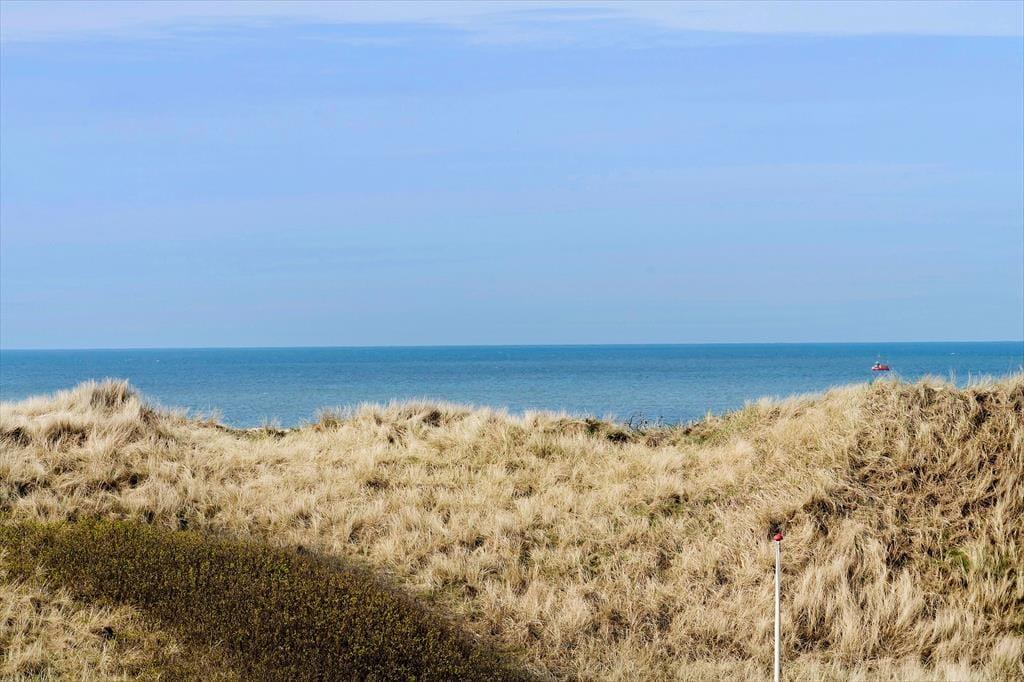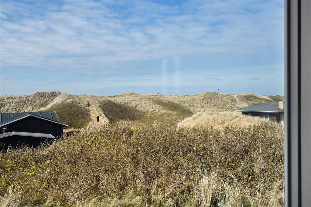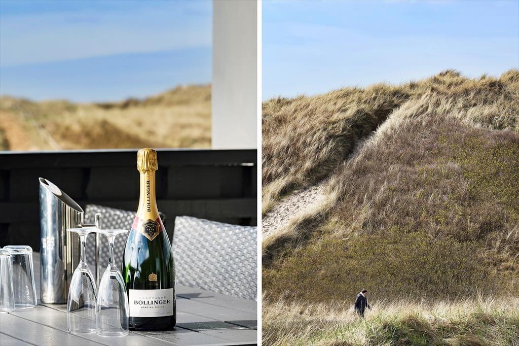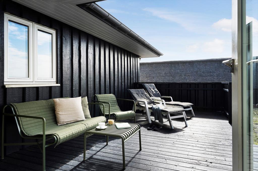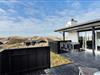 Sommerhusets sydvestvendte terrasse er delvist overdækket og tilpas afskærmet, så du kan koble af i ugenerede omgivelser med udsigt til det kuperede kystlandskab. Du er så tæt på den yderste klitrække, at du måske ligefrem kan høre bølgerne rulle ind på stranden – og hvis du går op for at sætte dig på grundens udsigtsbænk, kan du se havet og har frit udsyn til aftnens smukke solnedgang. Med andre ord giver udearealerne dig mulighed for at komme i kontakt med naturen og mærke roen i kroppen, og samtidig har du særdeles nem adgang til byens tilbud, hvis du får lyst til at spise is eller drikke cafékaffe undervejs.