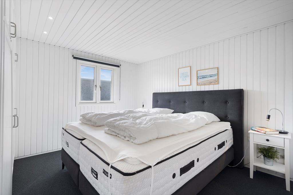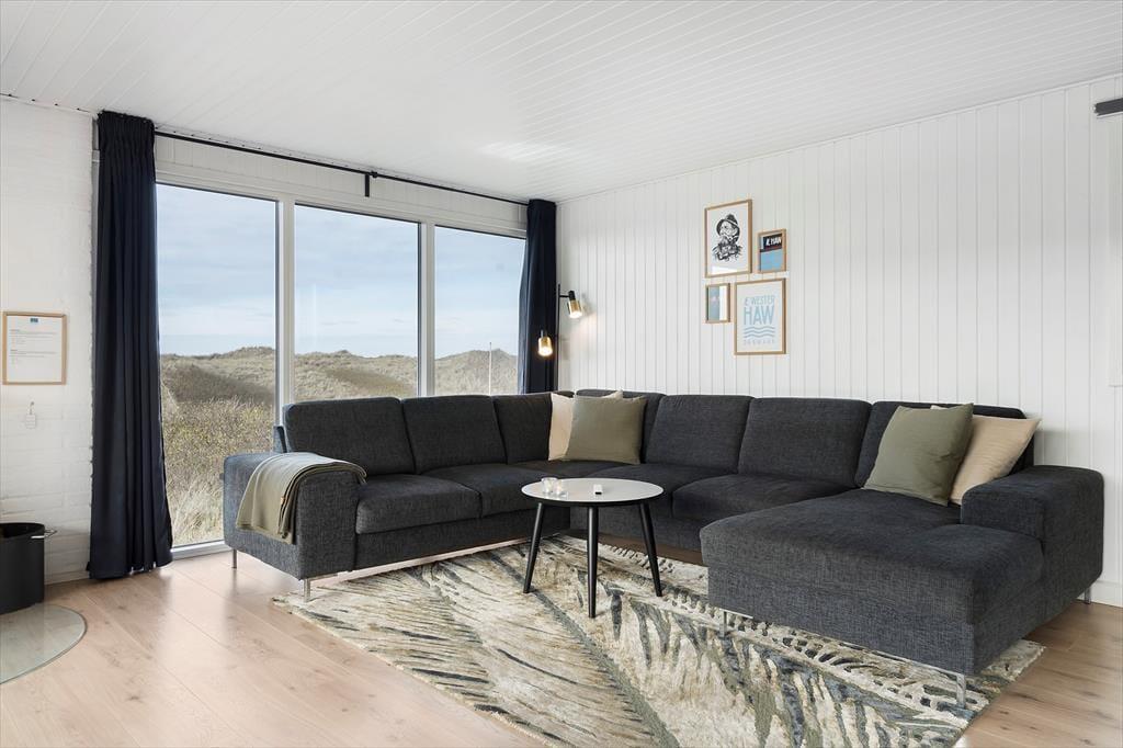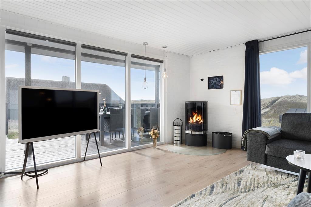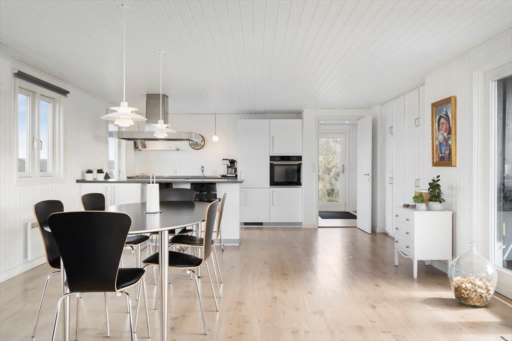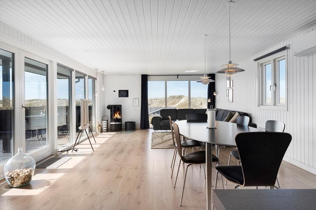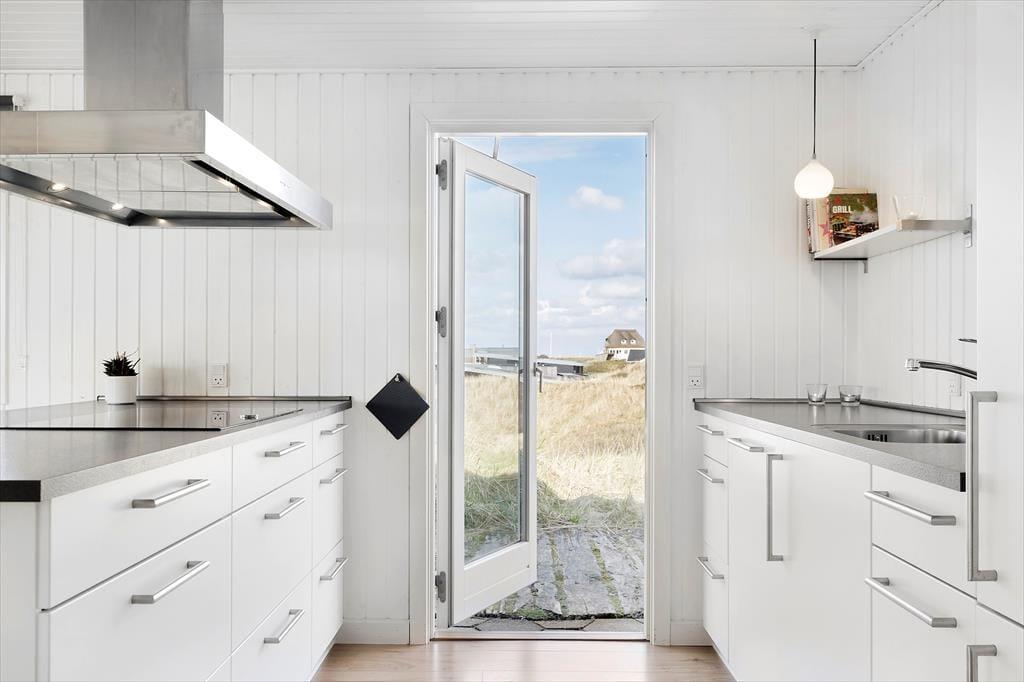 Inde fra stuen har du et fint kig til klitterne, så selv når du sidder med en varm kop kaffe og ild i brændeovnen, kan du nyde den strandnære beliggenhed. Sommerhuset er et klassisk træbyggeri fra 1970’erne, der er blevet renoveret på vellykket vis – men med respekt for byggestilen, så rummene samtidig emmer af hygge og afslapning. Det moderne køkken giver dig en dejlig arbejdsstation, når du vil lave mad, og trænger du til underholdning imens, kan din familie holde dig med selskab, hvis de sætter sig på barstolene. De tre soveværelser giver jer en rar ramme om nattesøvnen, og så er det for øvrigt praktisk at have to badeværelser i huset.