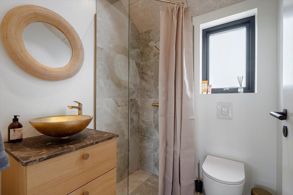 Et af huset højdepunkter er pool området og poolen med svømmetræner, som der er indgang til via det store flotte New yorker glasparti. Her kan I tilbringe mange hyggelige timer i poolen og der er direkte udgang til en udebruser samt den lækreste ude spa. Efter en forfriskende svømmetur eller en tur i spaen er det perfekt at trække sig tilbage i saunaen og lade roen og varmen omslutte dig.