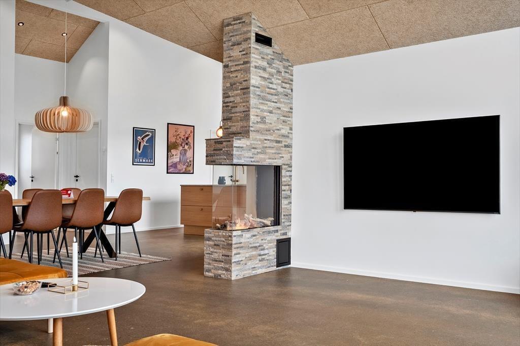 De 10 sovepladser er fordelt på 4 soverum, hvor 3 af rummene råder over dobbeltsenge og det sidste soverum er indrettet med køjesenge. Det naturlige samlingssted er huset opholdsrum, der er i åben forbindelse med det veludstyrede og flotte køkken, hvor der kan tilberedes lækkert mad til hele selskabet. Imens maden tilberedes, kan resten af familien nyde udsigten til klitterne i huset opholds møbler hvor der kan tændes op i gaspejsen, som skaber den hyggeligste stemning eller der kan streames film på fjernsynet via chromecast eller vælges imellem de mange mulige tv-kanaler der findes i huset.