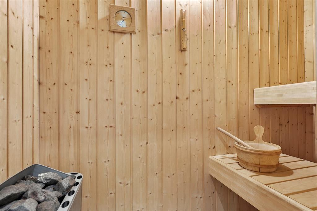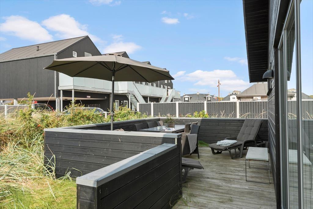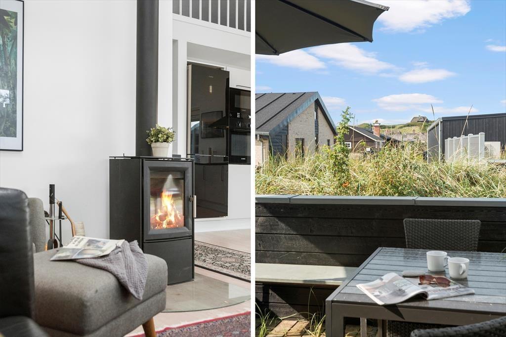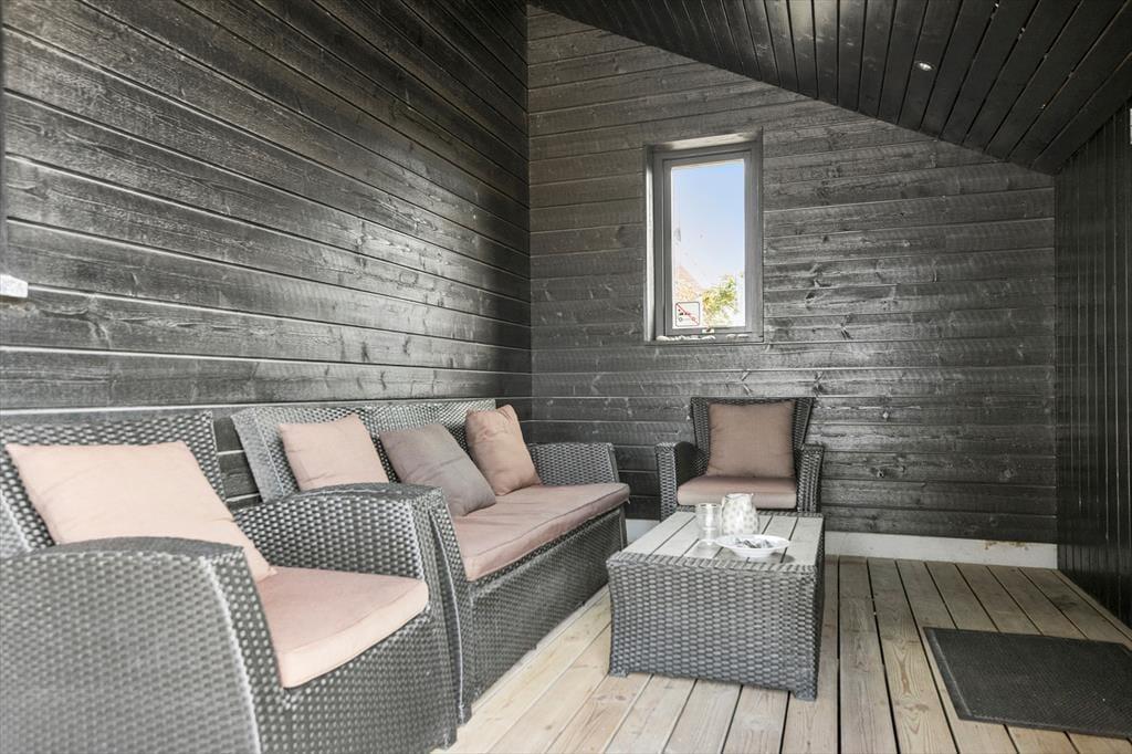 Hvis sommersolen skinner udenfor, har du sikkert ikke lyst til at sidde i saunaen, men vil hellere slappe af på terrassen – og i så fald er det herligt, at huset råder over et skønt opholdsmiljø med både åbne og overdækkede arealer. Du vælger således selv, om du vil sidde helt i det fri, eller om du foretrækker at slænge dig i loungemøblerne i den afskærmede, overdækkede og ugenerede terrassekrog. Uanset hvor du sidder, kan du glæde dig over, at vejen ender blindt tæt på huset, så der er kun begrænset trafik, og alligevel har du nem adgang til både strand og byliv, hvis du får lyst til en havfrisk dukkert eller en is fra det nærmeste ishus.
