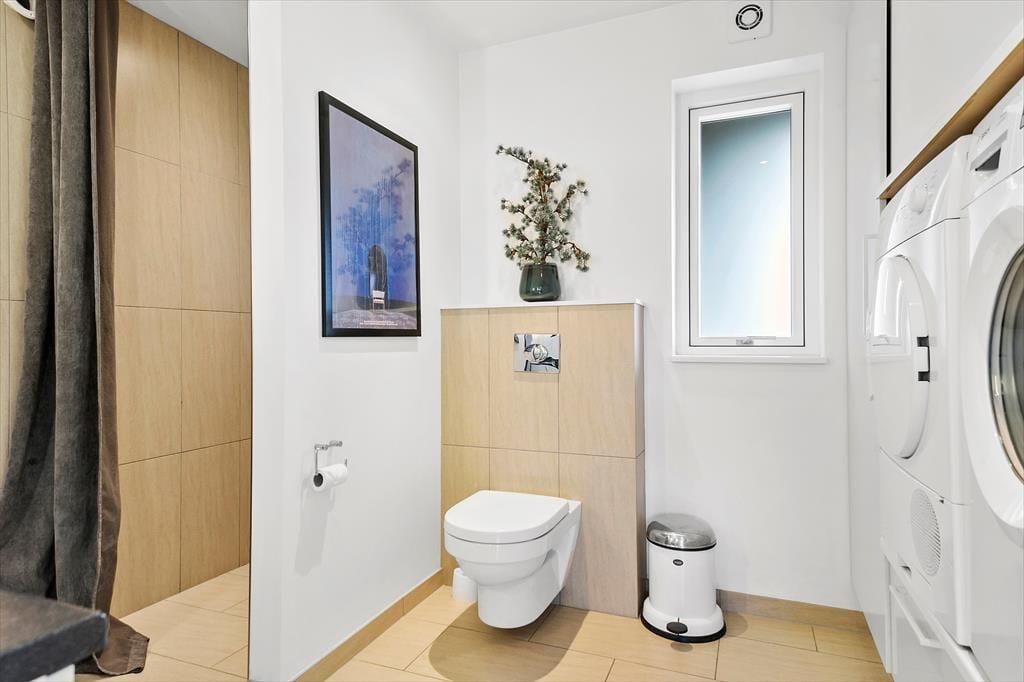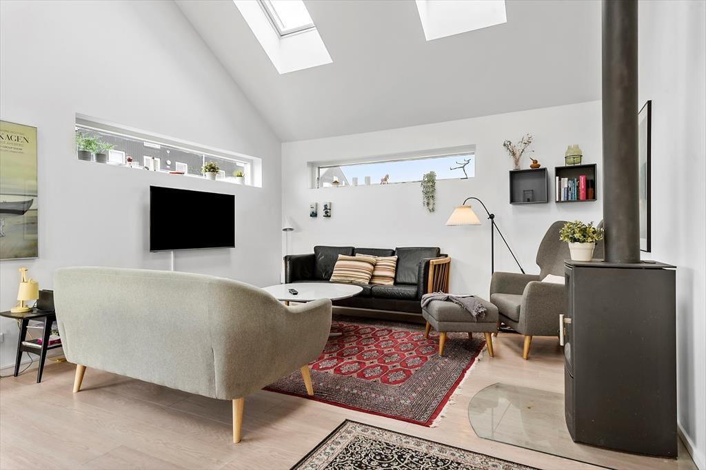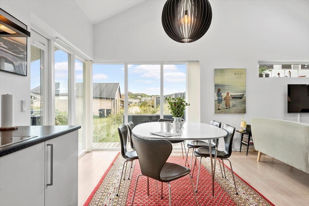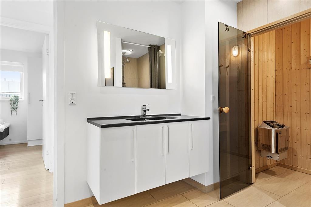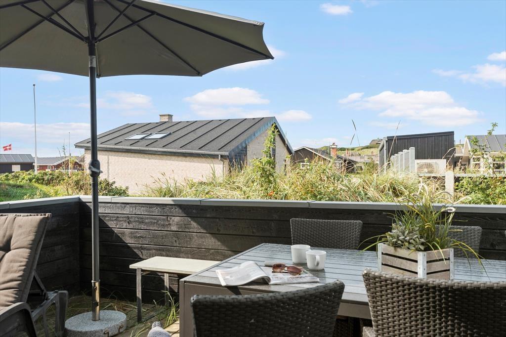 Hvis sommersolen skinner udenfor, har du sikkert ikke lyst til at sidde i saunaen, men vil hellere slappe af på terrassen – og i så fald er det herligt, at huset råder over et skønt opholdsmiljø med både åbne og overdækkede arealer. Du vælger således selv, om du vil sidde helt i det fri, eller om du foretrækker at slænge dig i loungemøblerne i den afskærmede, overdækkede og ugenerede terrassekrog. Uanset hvor du sidder, kan du glæde dig over, at vejen ender blindt tæt på huset, så der er kun begrænset trafik, og alligevel har du nem adgang til både strand og byliv, hvis du får lyst til en havfrisk dukkert eller en is fra det nærmeste ishus.