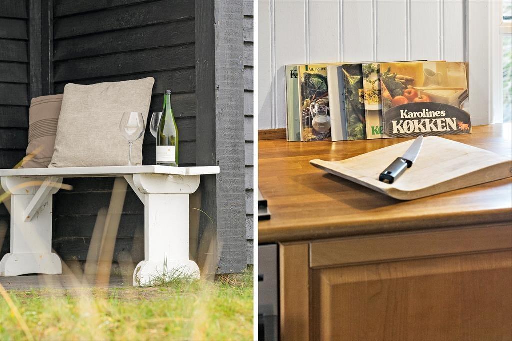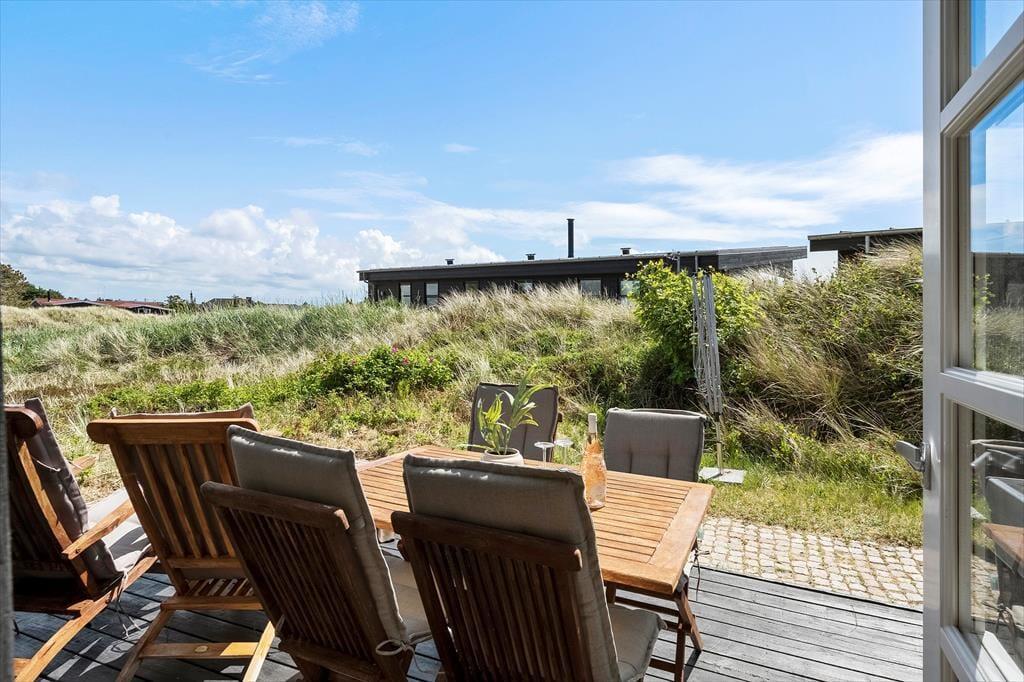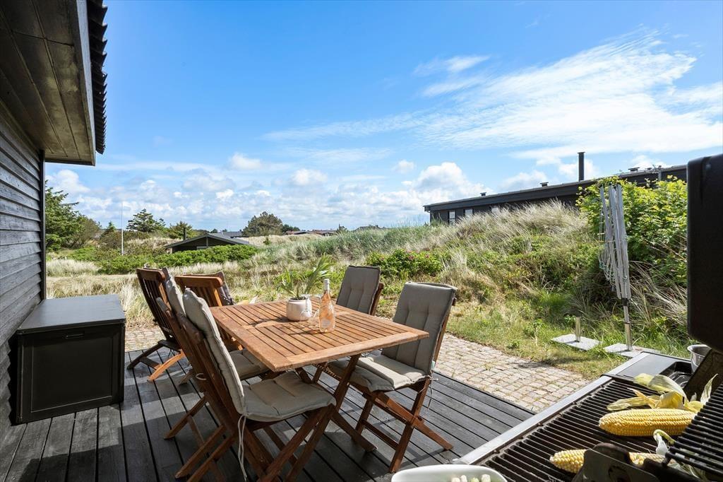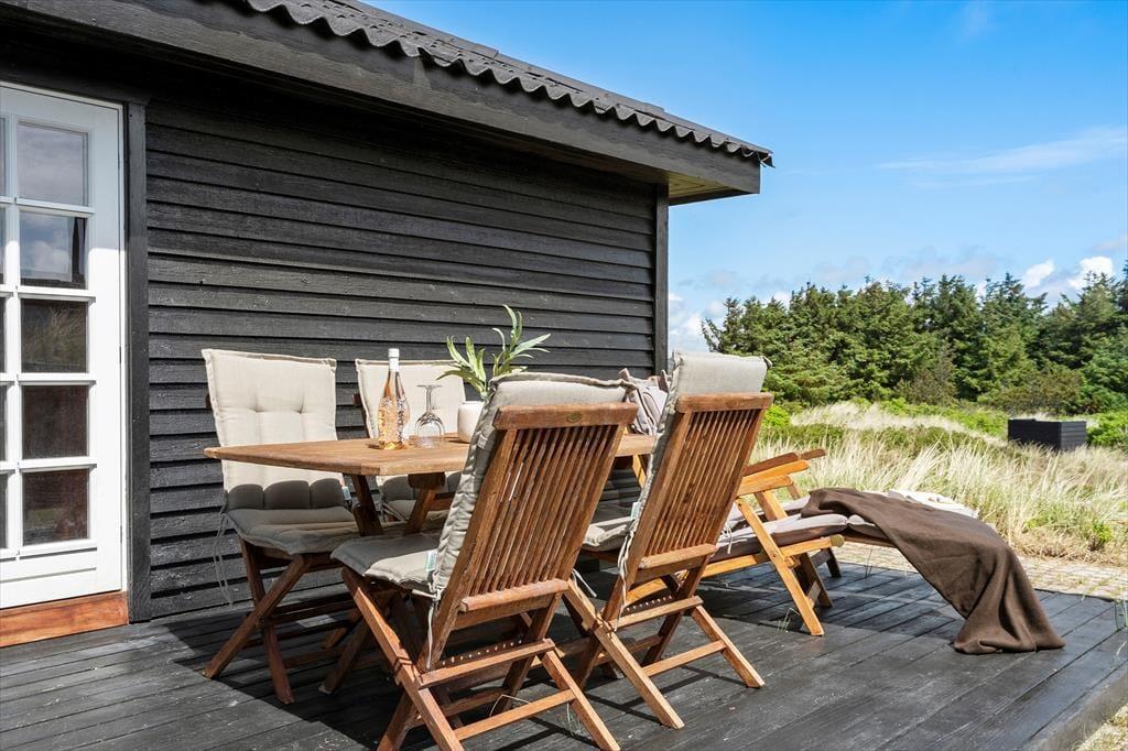 Ligesom fortidens feriegæster, der kom her i sommerhuset, kan du sætte dig ud på bænkene ved hoveddøren for at læse avisen i skyggen – selvom du formentlig ikke vil sidde her iført vest og med vandkæmmet hår som dengang. Drømmer du om at få en lur i en liggestol eller samle familien til grill om aftenen, er det sikkert den sydvendte solterrasse, du i stedet tager i brug. Den solrige opholdsplads indbyder til total afslapning, og du er godt skærmet af klitterne og af læhegnet mod vest, mens du kan nyde områdets dufte og den friske, salte luft.