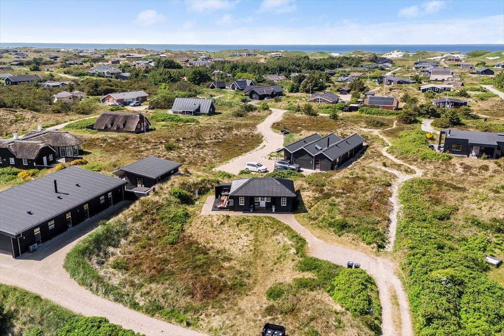 Sommerhuset ligger dejligt ugeneret for enden af en lille sidevej i det smukke naturområde, der breder sig syd for Søndervig by og ned langs Holmsland Klit. Både Vesterhavet og Ringkøbing Fjord er i nærheden, og Søndervig Put & Take har du også tæt på, hvis du vil fiske i løbet af ferien. Søndervig Strand kan du nemt nå til fods, og hvis du vil ud at surfe, kan du køre til et af egnens mange gode surfspots. Uanset om du er i bil eller på cykel, tager det kun få minutter at køre ind til Søndervig, hvis du vil handle i supermarkedet, tage ud at spise, invitere børnene i badeland eller opleve den årlige Sandskulpturfestival.
