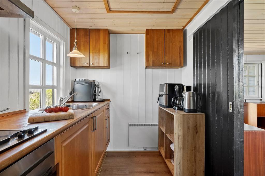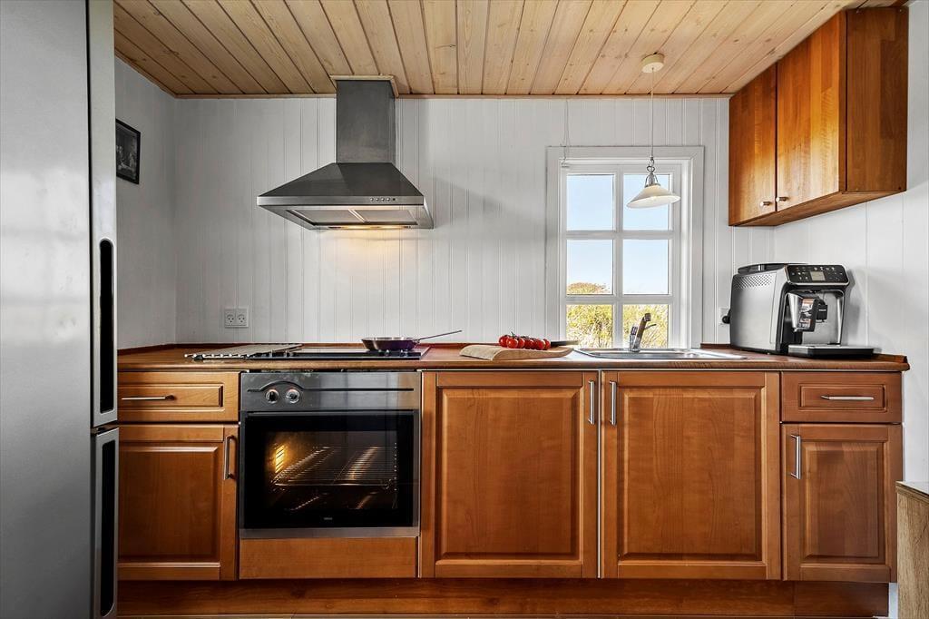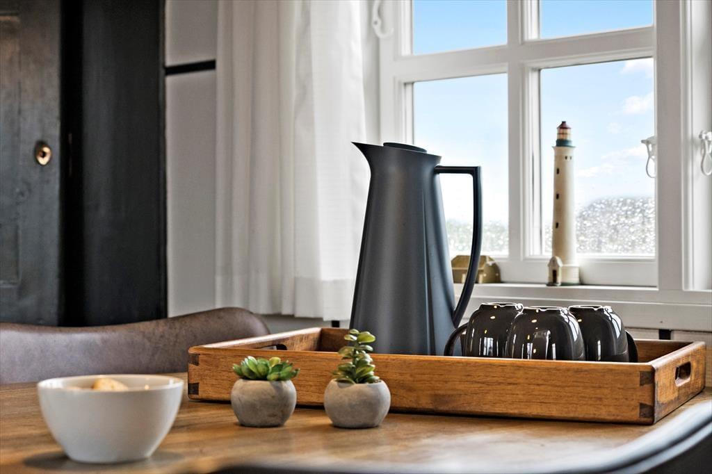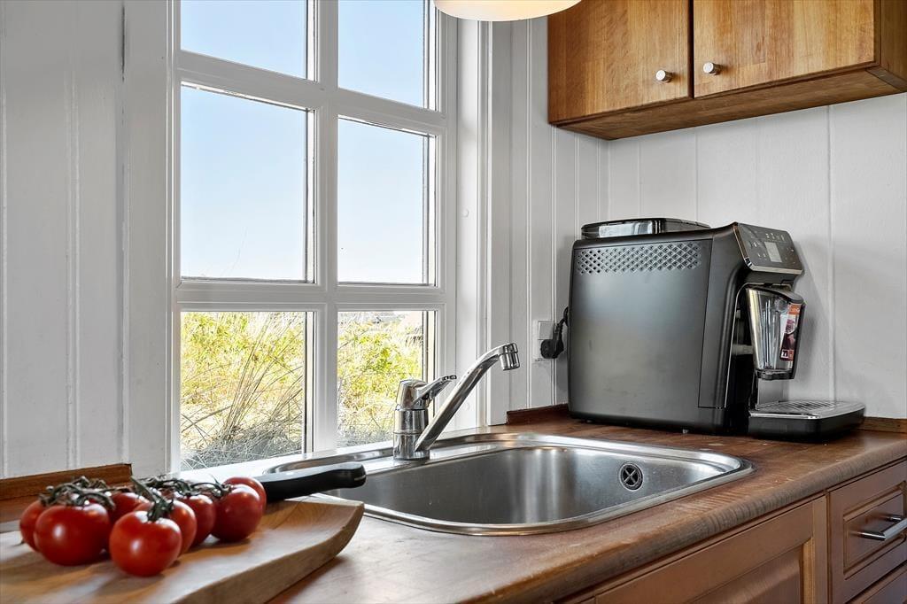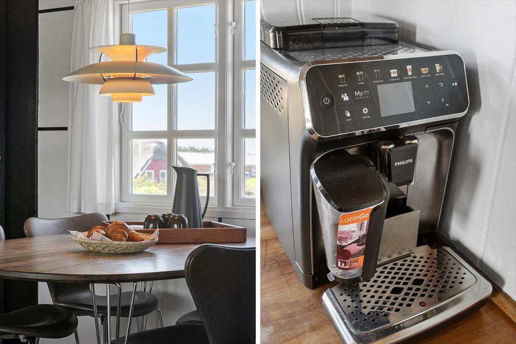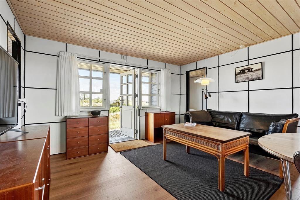 Sammenlignet med i dag stod der ikke mange sommerhuset i det kuperede klitområde i 1930’erne, så udsigten har ændret sig en del. Til gengæld er meget ved det gamle ved sommerhuset: Der står stadig en gammel vandpumpe nær den sorte træfacade, og inden døre har stuen de samme karakteristiske vægge. Huset har selvfølgelig fået moderne isolering, men naturens lyde bliver fortsat inviteret indenfor, når regnen drypper på taget, og blæsten fejer hen over marehalmen. Nærheden til naturen kan heldigvis stadig mærkes! Samtidig er der en del, der er ændret, for mens husets oprindelige ejere gladelig samlede 17 familiemedlemmer inden døre, passer indretningen efter nutidens standarder godt til fire personer. Derudover er rummene nænsomt renoverede med blandt andet et flot trægulv i stuen, et pænt køkken, hurtig wi-fi-forbindelse og fladskærms-tv med 300 tyske kanaler. Sengene har de maksimale mål, der kan passe ind i soveværelserne, og så er der skydedøre til både værelser og køkken for at spare på pladsen. I dag skal du selvfølgelig ikke ud til brønden for at vaske dig, for der er installeret et brusebadeværelse – som ikke er stort, men anvendeligt. Kort sagt får du en velgørende blanding af autentisk sommerhusstemning og moderne bekvemmeligheder, der gør ferielivet mindeværdigt.