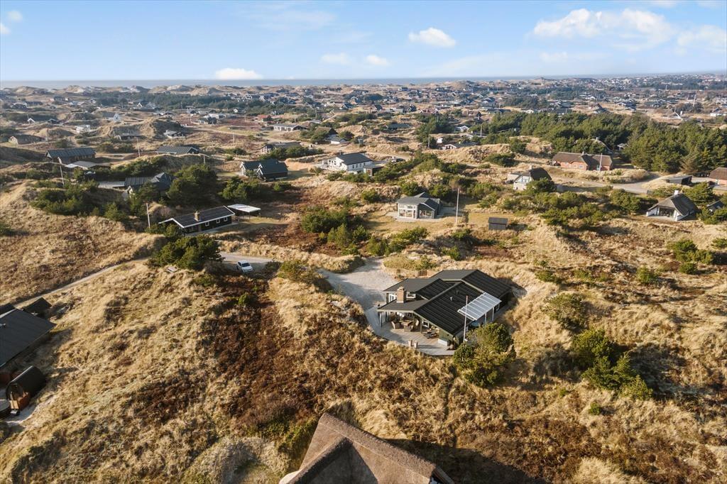 Den 2489 m2 store klitgrund ligger dejligt ugeneret for enden af en lille stikvej cirka 10 minutters gang fra Søndervig Strand. Den korte afstand betyder, at I sagtens kan besøge Vesterhavet flere gange dagligt, hvis I vil bade, slentre langs kysten og opleve solnedgangen over vandet. En udflugt til Ringkøbing Fjord kan også sagtens komme på tale, når I holder ferie på Holmsland Klit – for eksempel bor I tæt på Bagges Dæmning, og hvis I er til surfing og SUP, er der mange gode surfpladser, hvor I kan stævne ud på boardet. Lystfiskeri er også en populær aktivitet, og i Søndervig finder I et godt udvalg af butikker og spisesteder foruden et tropisk badeland og en golfbane.