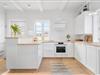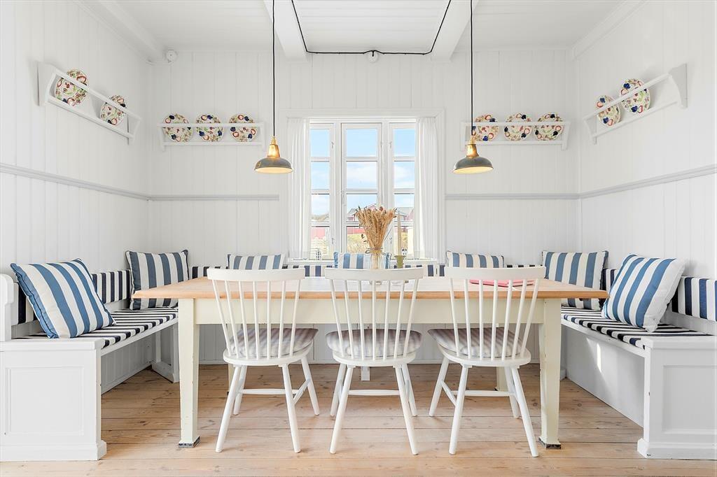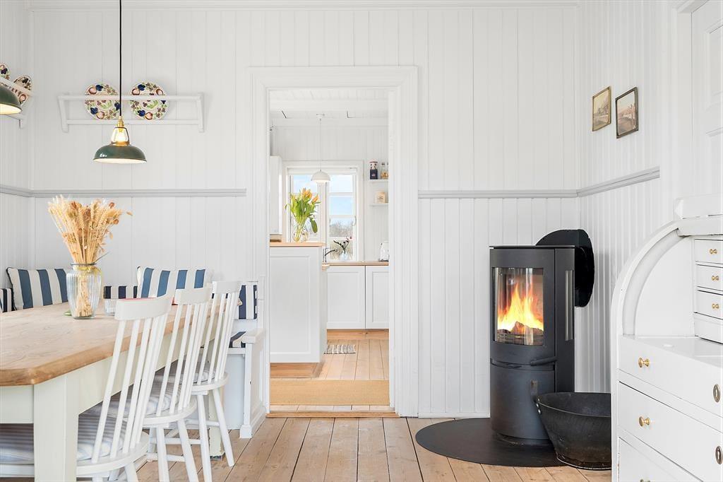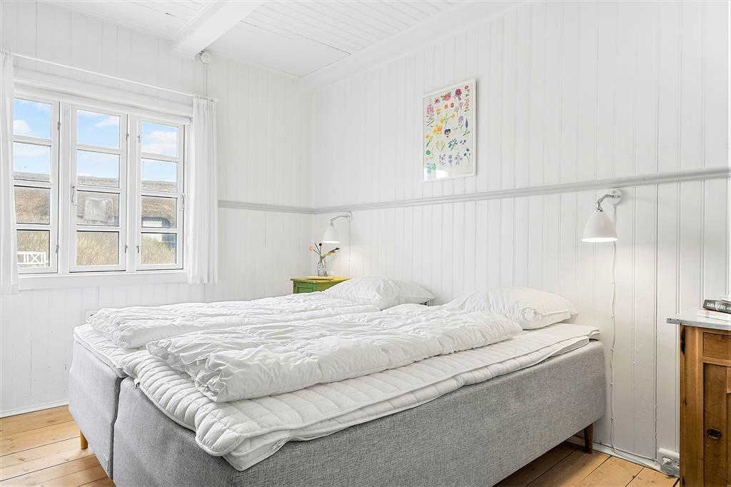 Det stråtækte træhus har en historie, der går helt tilbage til 1925. Allerede dengang var Søndervig en populær destination for badegæster om sommeren, men i dag er der ikke mange af datidens feriehuse tilbage. Netop dette skønne eksemplar blev totalrenoveret i 2020 på vellykket vis: De lyse rum emmer af klassisk charme og en indretning, der er et stilfuldt badehotel værdigt, og samtidig er der alle de moderne bekvemmeligheder, som du og familien kunne drømme om. Inden døre kan I blandt andet se frem til at lave mad i det flotte køkken og samles til middage rundt om spisebordet nær brændeovnen, hvis altså ikke det er udestuen, der danner rammen om hyggestunderne.