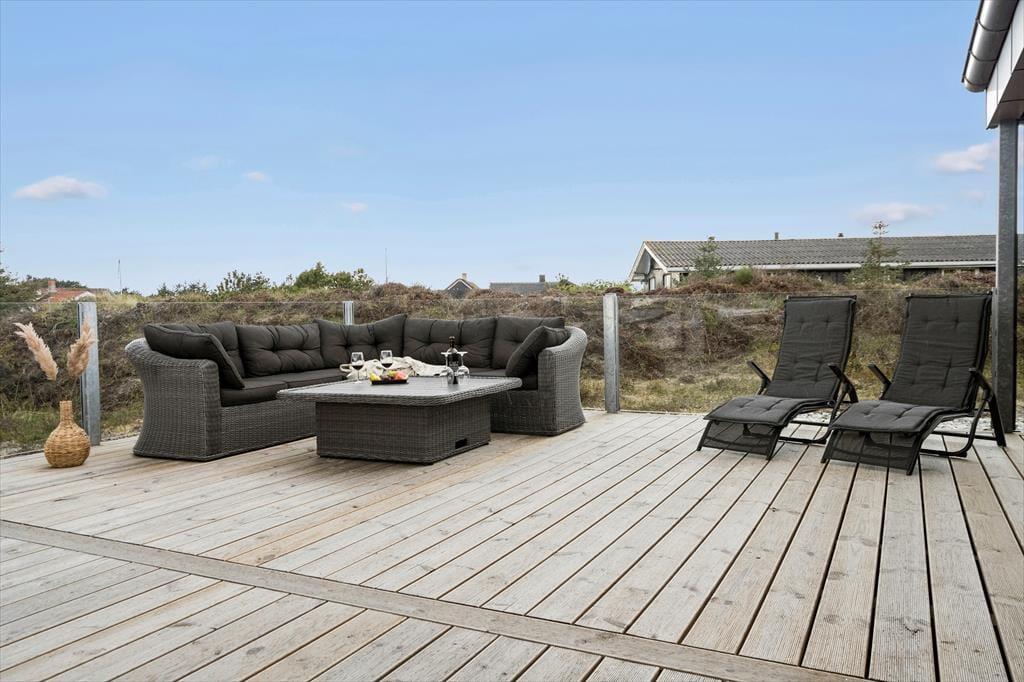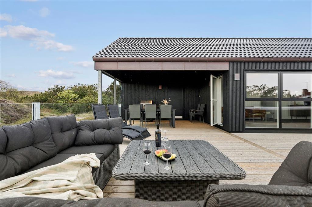 Dette moderne nybyggeri på Frans Julius Vej i Søndervig giver jer den skønneste ramme om ferielivet. Her i sommerhuset har I nemlig alt, hvad hjertet kan begære af lækre faciliteter, smukt design og flot natur, og i kort gåafstand ligger både Vesterhavet og Ringkøbing Fjord.
