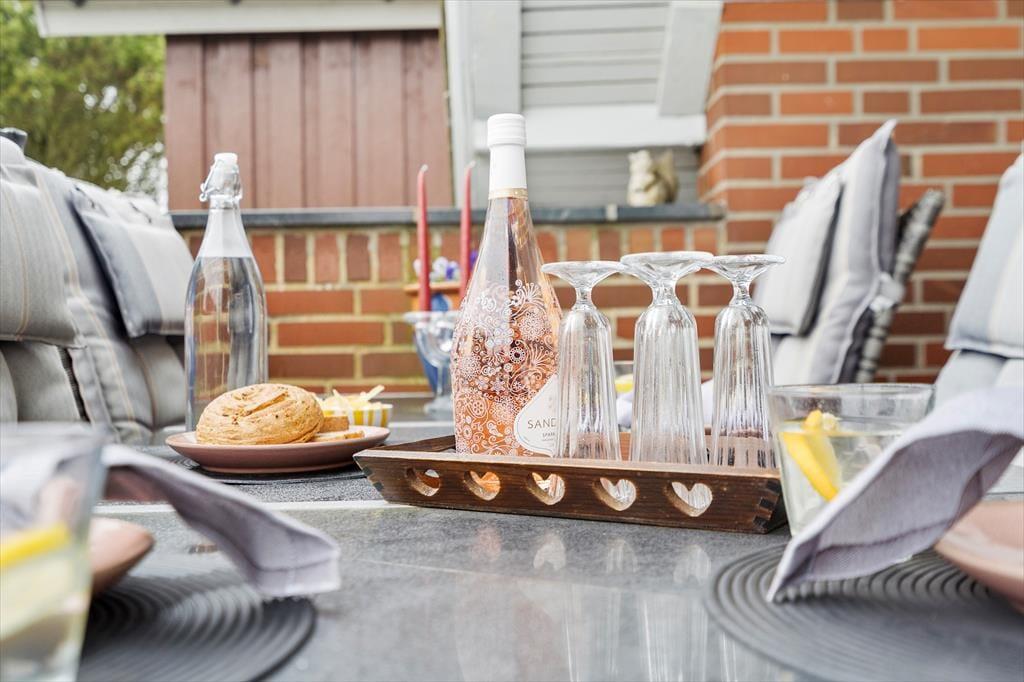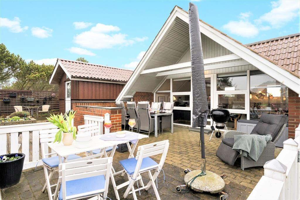 Ved både sommerhuset og annekset er der flere dejlige terrasser at vælge imellem, så du kan lige tage bestik af sol- og vindforhold, inden du finder den rette krog at slå dig ned i. Måske vil du starte dagen med at drikke morgenkaffe mod øst, og senere kan du rykke om på den anden side af huset – og her kan du i princippet blive siddende, lige indtil solen går ned. Det kan også være, at børnene udfordrer dig i fodbold og frisbee, så du er nødt til at komme op af havestolen, og sammen kan I begive jer ud for at udforske Søndervig og omegn.