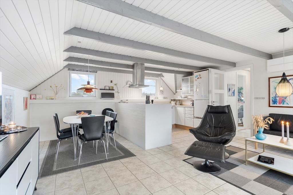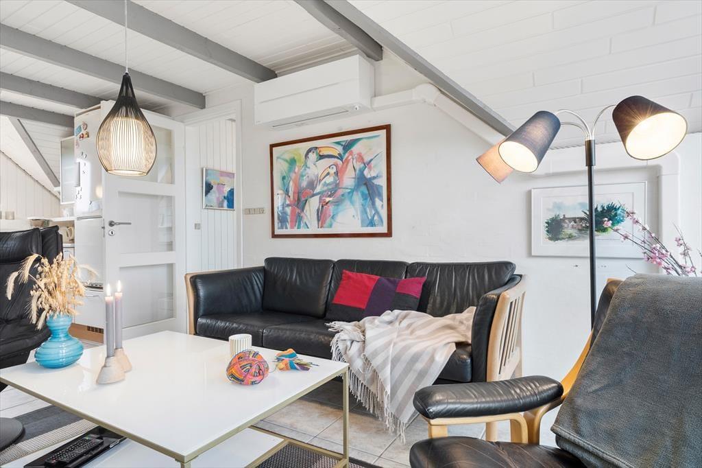 Sommerhuset fremstår pænt og velholdt både inde og ude, og det samme gør sig gældende for det tilhørende anneks. Sidstnævnte byder ikke bare på et soveværelse, men har også eget bad, så det er muligt at få lidt privatliv – det er der måske nogen i din familie, der vil sætte særlig pris på? I hovedhuset kan I alle hygge jer sammen i det dejlige opholdsrum, hvor køkken og stue er forenet. Hvis du har tryllet en kage ud af ovnen, kan I sætte jer i sofaen med noget varmt at drikke, ild i brændeovnen og måske endda en film på fladskærms-tv’et. Er vejret for solrigt til den form for afslapning, kan du i stedet åbne havedøren og invitere sommerens dufte og lune brise ind i stuen.