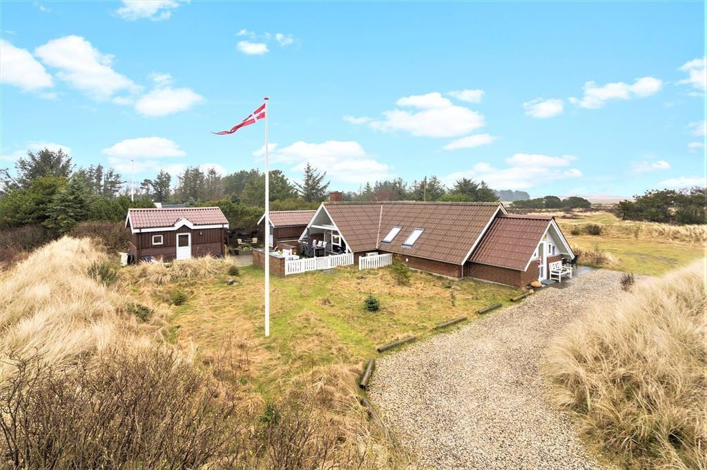 IndVelkommen til dette fine sommerhus, der ligger på en stor naturgrund sammen med et godt anneks og flere skønne terrasser. En stor del af ferien kan oplagt udspille sig i eller udenfor huset – men det er nu også et plus at bo tæt på både Vesterhavet, Ringkøbing Fjord og Søndervigs hyggelige bymidte.