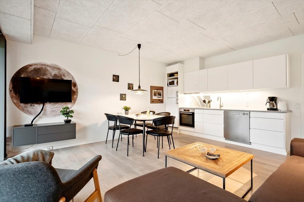 Lejlighed i Søndervig Strand og By, Vestjylland, med plads til 2 voksne, 2 børn og 1 husdyr. Der er en hyggelig indretning, og du finder desuden opvaskemaskine i boligen.