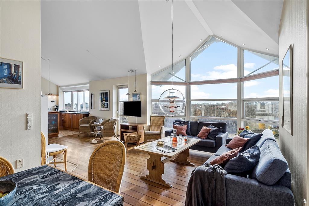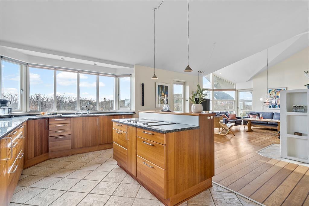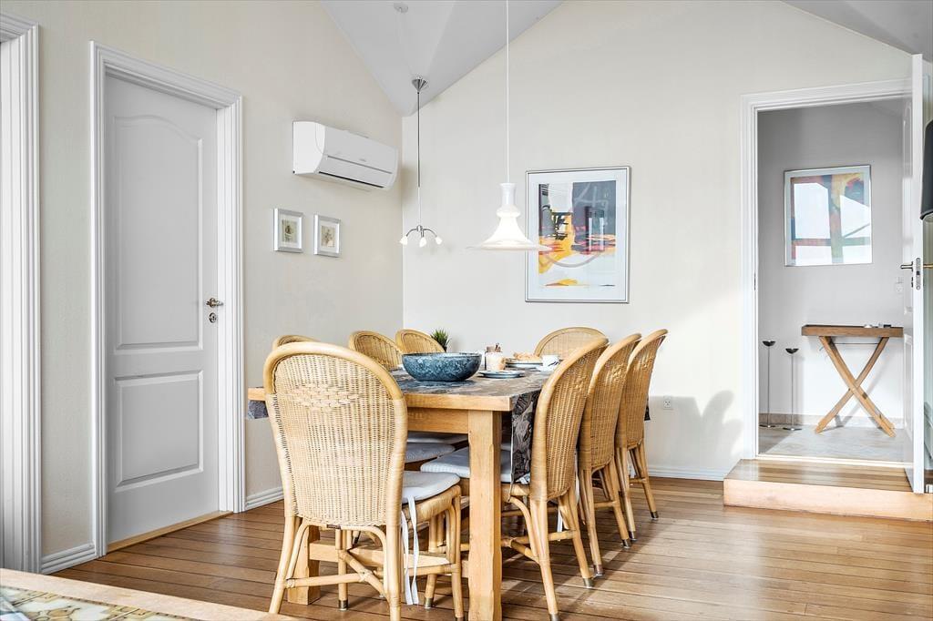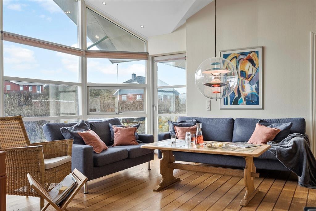 Når du træder ind i dette sommerhus, bliver du straks mødt af den vidunderlige stemning, som kun et hus med store vinduespartier og en fantastisk udsigt kan give. Det rummelige køkken og alrum er lysfyldt, takket være de store vinduer fra gulv til loft, der åbner op mod den storslåede natur omkring huset. Her kan du nemt tilberede måltider til familien eller vennerne, mens du samtidig nyder den betagende udsigt over landskabet. Når aftenen falder på, spreder brændeovnen en behagelig varme og en hyggelig atmosfære, der indbyder til afslapning med en god bog eller en kop varm kakao. De åbne rum giver en følelse af frihed og gør huset perfekt til hyggeligt samvær. Med fire gode værelser er der god plads til, at alle kan få deres egen komfortable base i huset.