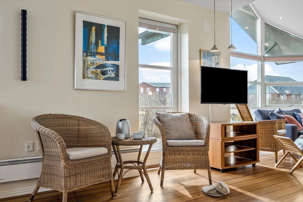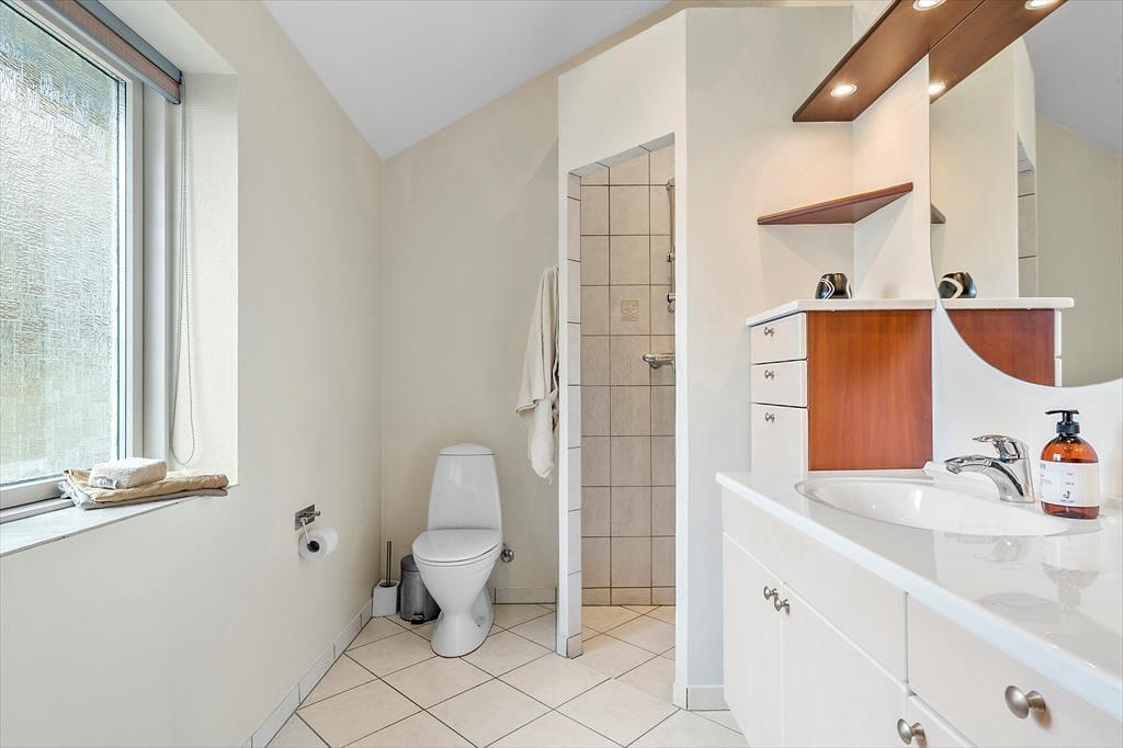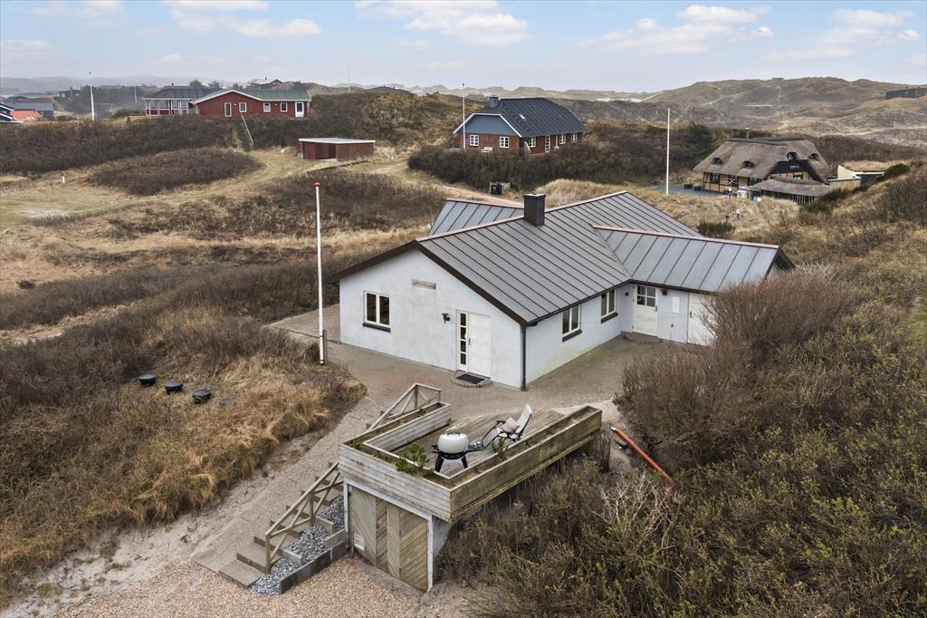 Dette sommerhus byder på en enestående kombination af moderne komfort og naturskønne omgivelser. Med store vinduespartier, der giver en betagende udsigt over det omkringliggende landskab, føles huset lyst og åbent. Her kan du nyde både hyggelige stunder med familie og venner i det rummelige alrum og samtidig være tæt på naturen. Beliggenheden på en bakketop sikrer en fredelig atmosfære, og den store terrasse inviterer til afslapning under åben himmel. Det er et ideelt sted at trække sig tilbage, nyde roen og samtidig være tæt på både strand og lokale oplevelse.