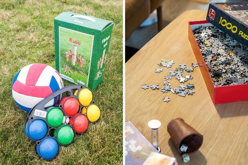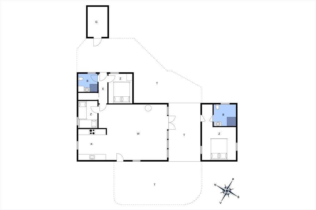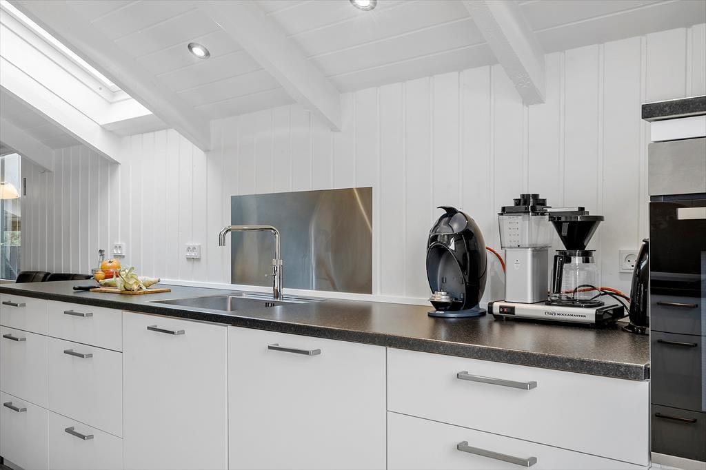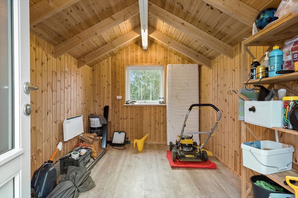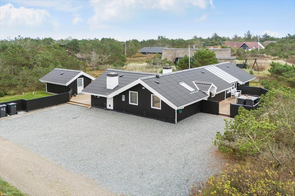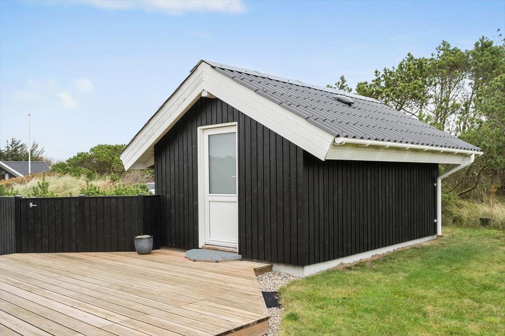 Feriehuset har en række gode terrasser, der giver jer mulighed for at nyde livet under åben himmel. Mod vest kan I nyde aftensolen på en delvist overdækket terrasse, mens en afskærmet terrasse på husets anden side giver ro og privatliv til hyggelige stunder og måltider udendørs. Med havemøbler, liggestole og en gasgrill er alt klar til grillmiddage og afslappende eftermiddage i solen. Den åbne naturgrund omkring huset skaber samtidig en perfekt ramme for leg og afslapning, så både børn og voksne kan nyde ferielivet fuldt ud.