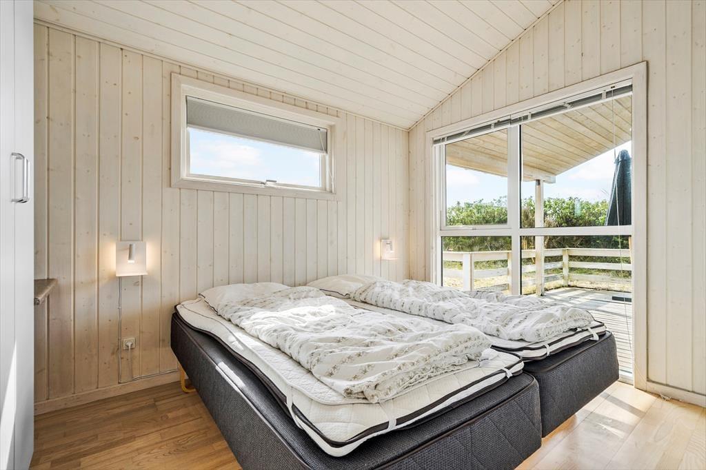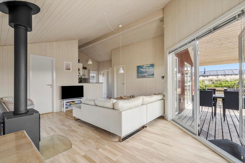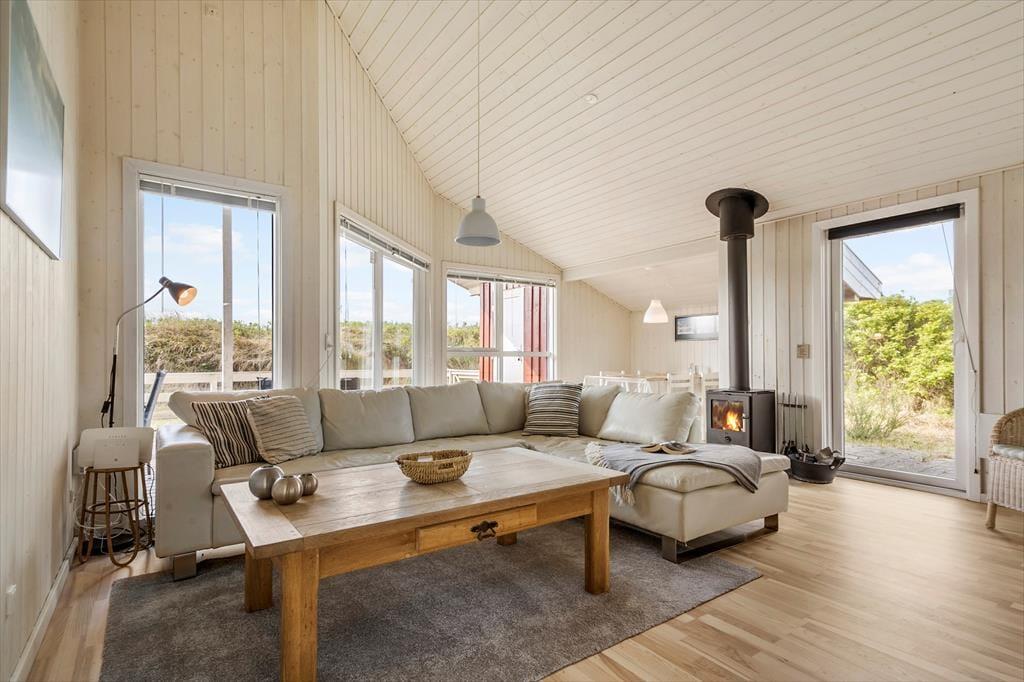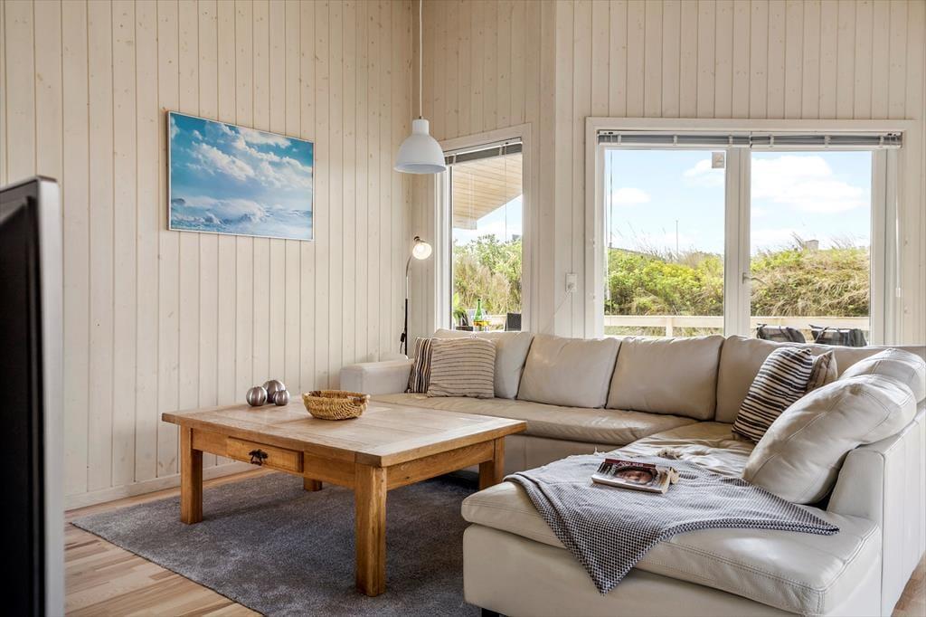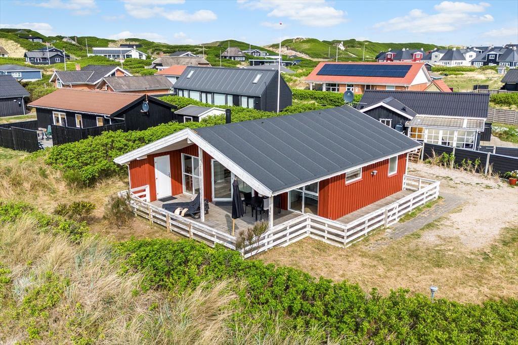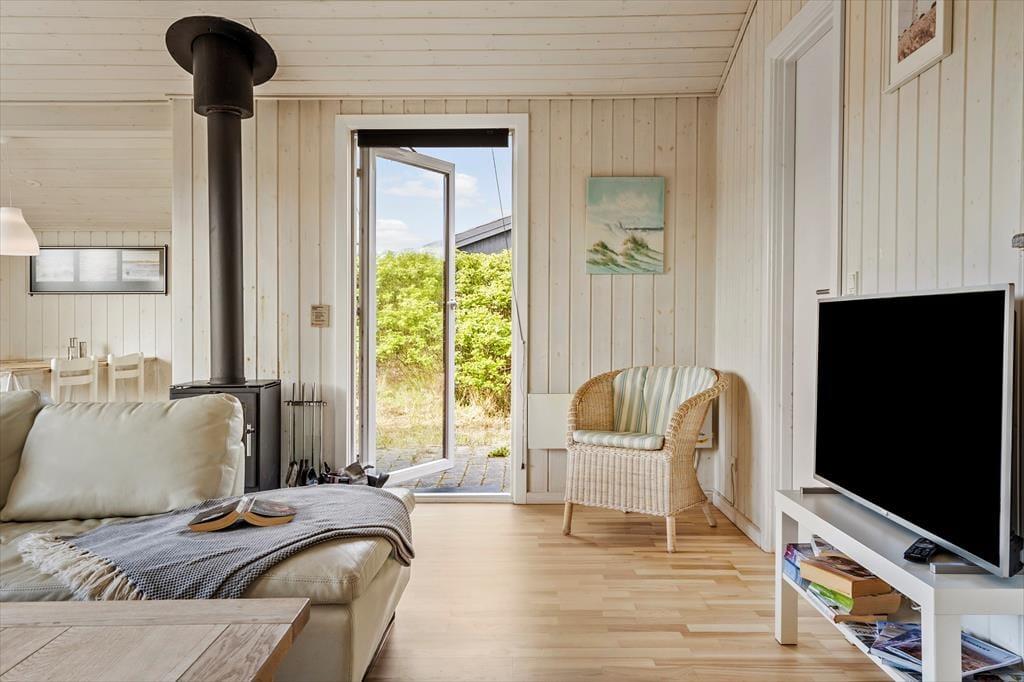 Velkommen til dette lyse og venlige sommerhus, der har en glimrende planløsning til fire personer. Huset ligger helt centralt i Søndervig på den lille grusvej Sletten, og Vesterhavet er så tæt på, at I kan gå ud til kysten på cirka tre minutter.