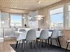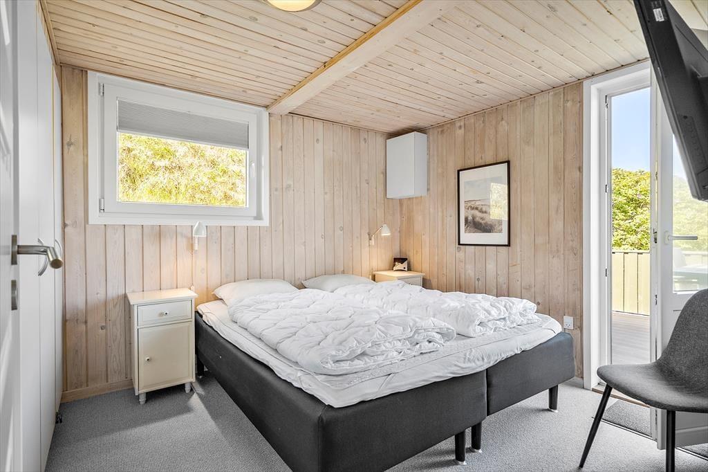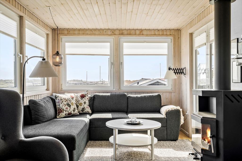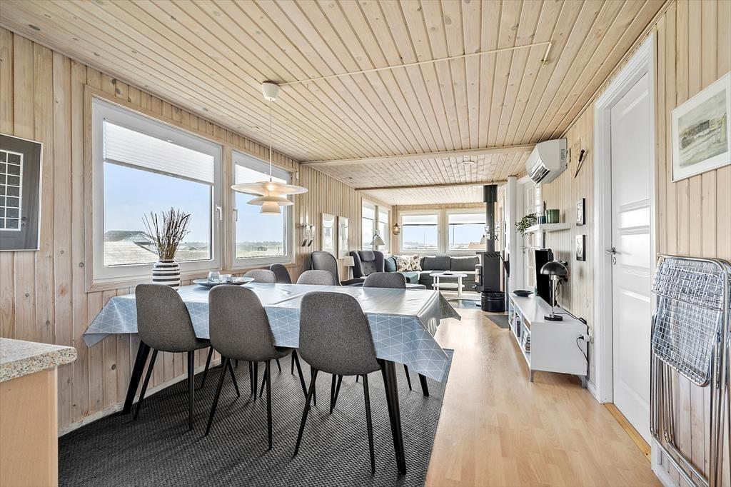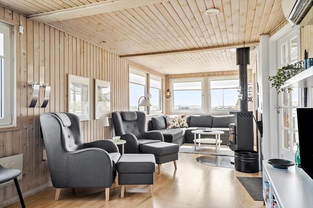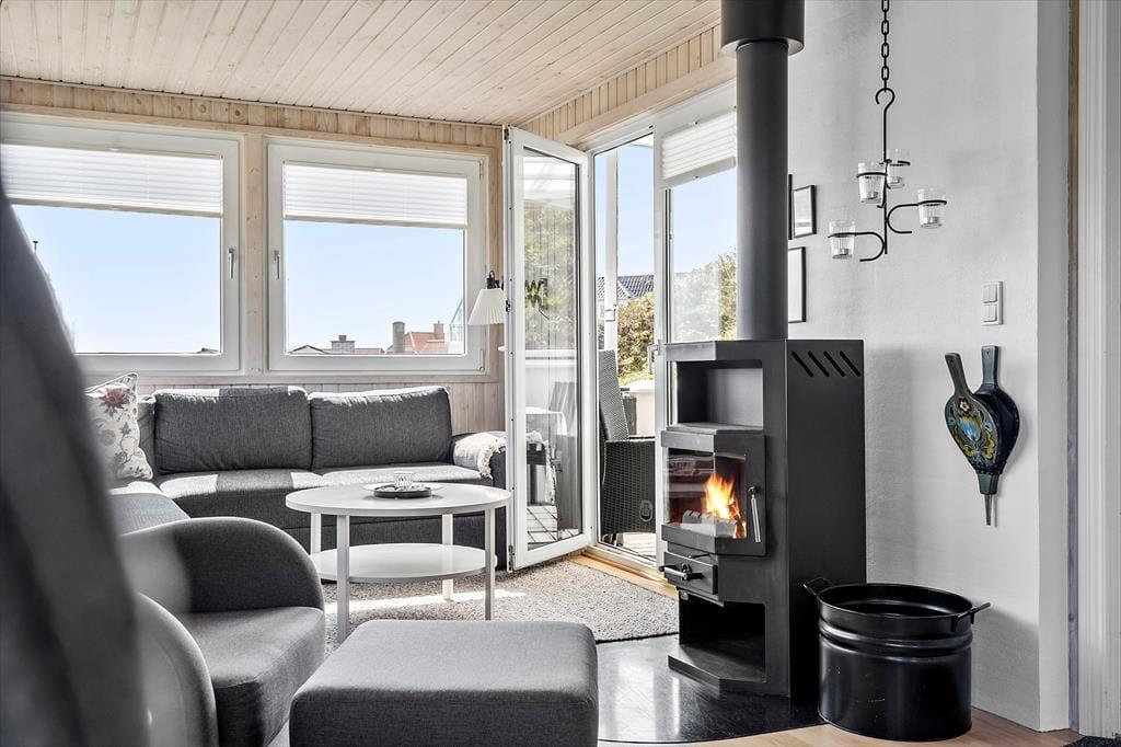 Udsigten bliver inviteret helt ind i stuen, og det er med til at gøre ferielivet ekstra skønt. Både spisebordet og sofahjørnet er placeret ved store vinduer, mens husets lænestole er stillet strategisk ved fladskærmen, så I kan sidde komfortabelt, når I ser film. I stuen er der både brændeovn og varmepumpe med kølefunktion, og i den ene ende ligger køkkenet, der er udstyret med keramisk komfur, varmluftsovn, opvaskemaskine og meget andet godt. Wi-fi-forbindelsen er lynhurtig, men selvom det er hyggeligt at sidde og surfe, kan det anbefales at komme i seng i ordentlig tid – for er der noget bedre end at kunne vågne helt udhvilet efter en lang og god nats søvn, når det er ferietid? Soveværelser er der to af, hvoraf det ene er med tv, og badeværelset fremstår pænt og lyst som de øvrige rum.