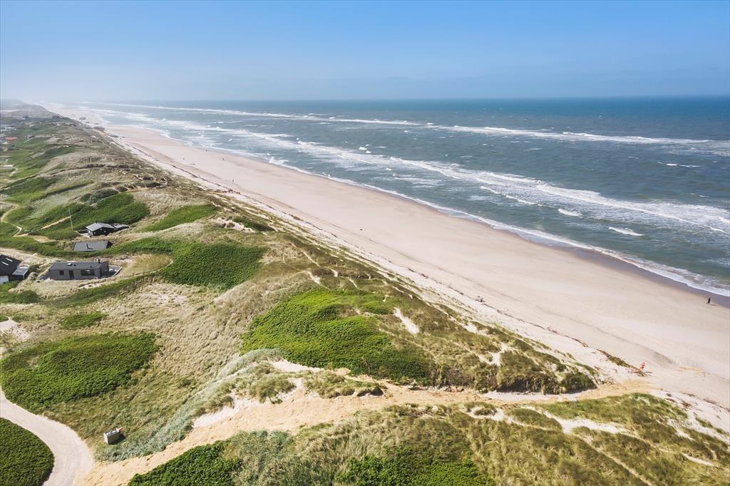 Vejen ender blindt tæt på sommerhuset, og I skal ikke spadsere mere end 150 meter, før I står på Søndervigs smukke sandstrand og er klar til at hoppe i Vesterhavet. Er det ikke vejr til en dukkert i det salte vand, er der et tropisk badeland i byen foruden gode legepladser, en golfbane og en årligt tilbagevendende sandskulpturfestival. Fra sommerhuset har I kort gåafstand til badebyens gode udvalg af butikker og restauranter, og hvis I har medbragt cykler, kan I oplagt udforske de naturskønne omgivelser – for eksempel kan I besøge fiskerbyen Hvide Sande, der ligger så smukt midt på Holmsland Klit.