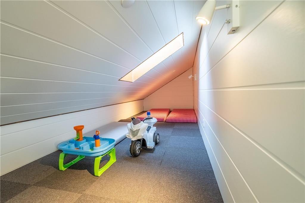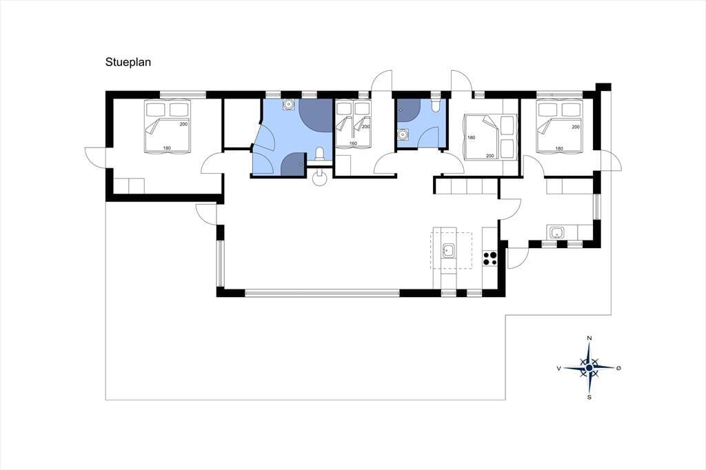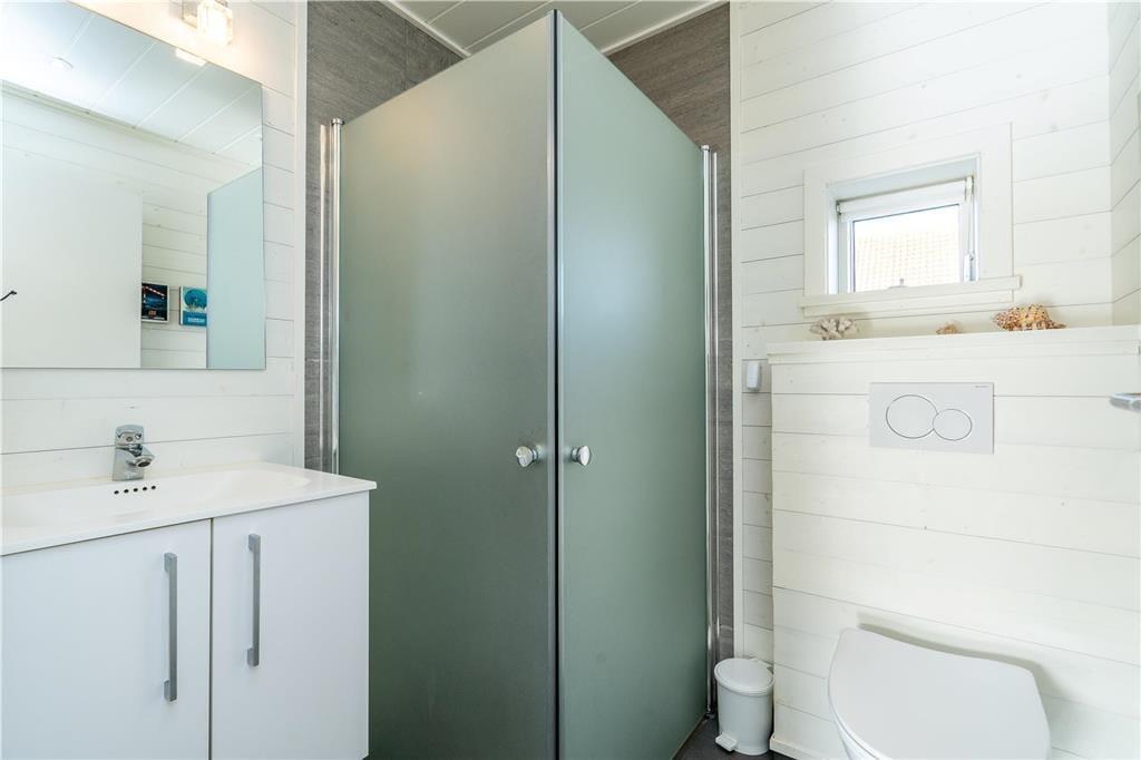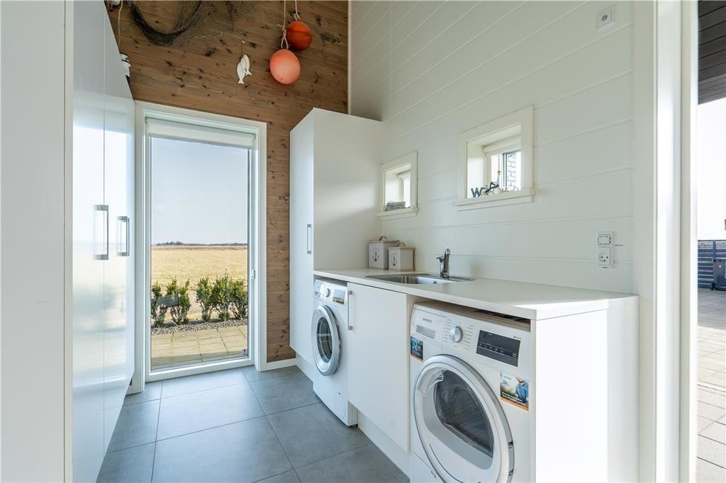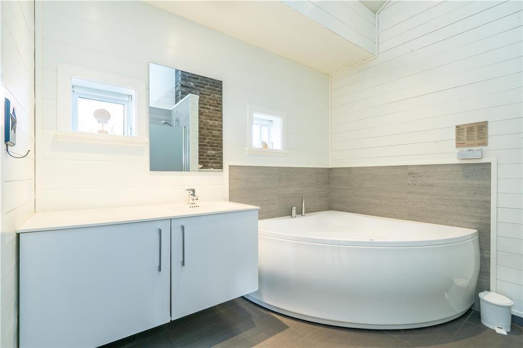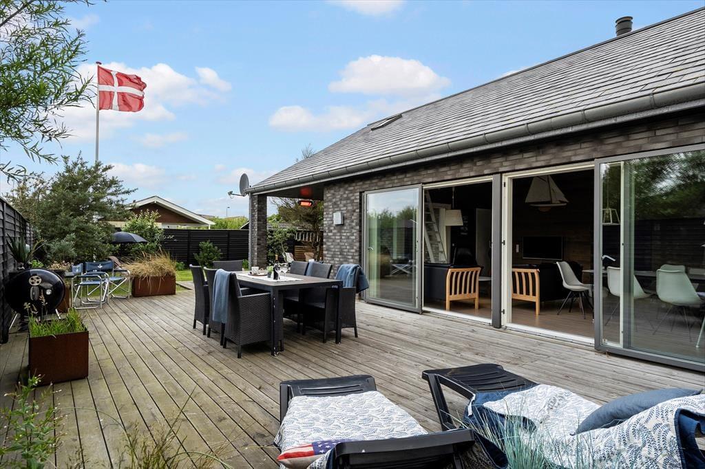 Den 130 m2 store og stilrene murstensejendom kan uden problemer rumme otte voksne og to børn, for der er fire gode soveværelser og en stor hems med plads til overnatning. Hvis I er mange samlet, er det rart, at der er to flotte badeværelser i huset, og så er det ene endda et rigtigt wellnessrum med spabad og sauna. I alle rum er der gulvvarme – selv i entréen, der er indrettet som et bryggers med vaskemaskine, tørretumbler og håndvask. Bedst af alt er opholdsrummet, der imponerer med flot loftshøjde, smukt lysindfald og moderne møblement. Fra det lækre køkken har I et godt overblik over stuen, der byder på et stort spisebord og en sofagruppe med fladskærms-tv med parabolkanaler. Om sommeren kan glasset for det store vinduesparti trækkes helt til side, så stuen smelter sammen med den sydvendte terrasse.
