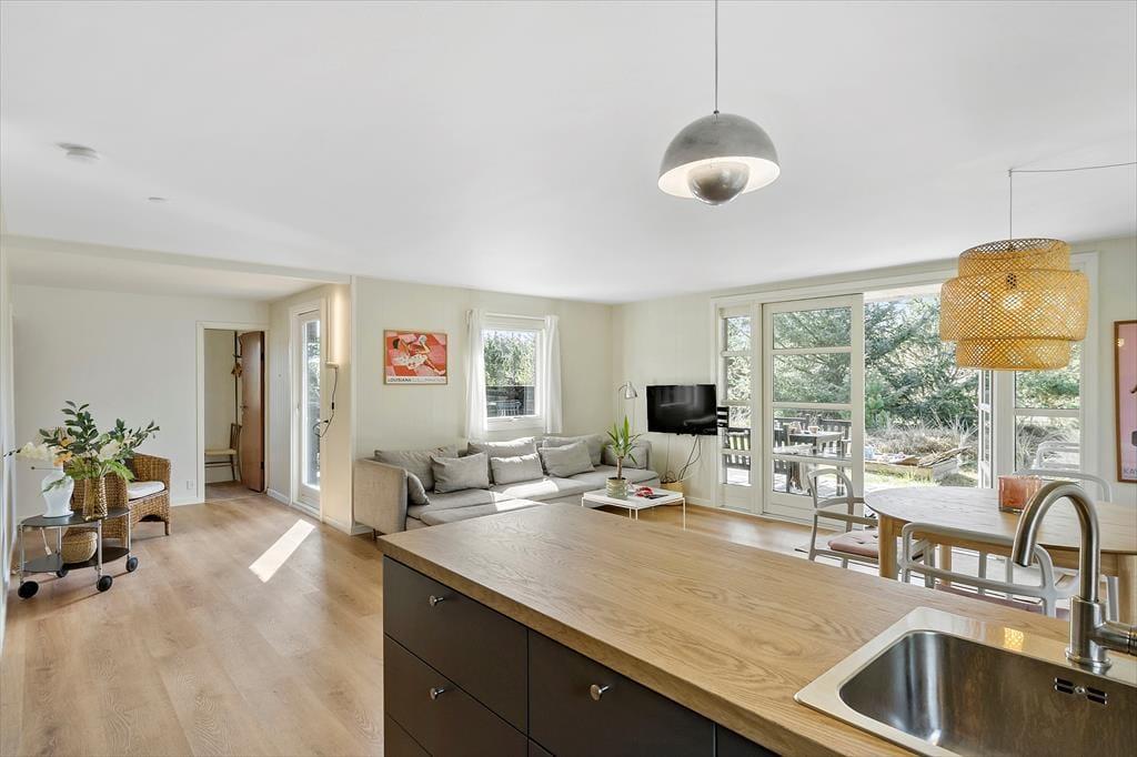 Fra den ugenerede grund har I kun en kort gåtur til stranden, hvor I kan nyde en svalende dukkert på de varme sommerdage eller lade jer ruske godt igennem, når vestenvinden blæser i ydersæsonerne, og havet viser tænder. Wind- og kitesurfere valfarter til området, hvor både Ringkøbing Fjord og Vesterhavet giver mulighed for at tage på vandet, og området byder på fiskesøer samt mulighed for at fiske om kap med sælerne ved Afvandingsslusen i Hvide Sande. Familiens yngste vil elske en tur i det tropiske badeland i Søndervig, og her finder I også en velanlagt golfbane og gode spisesteder.