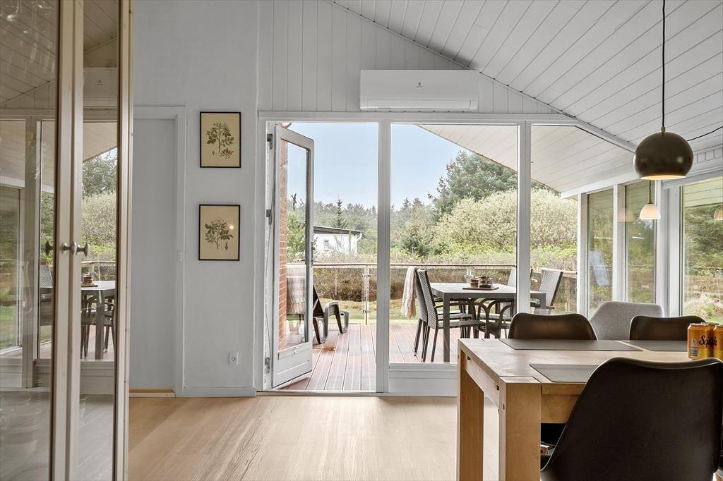 Landskabet omkring huset består af små skovstykker og bølgende klitter, og stierne giver mange gode muligheder for gåture eller udflugter på cyklerne. Stranden er kun en kort gåtur væk, og her kan I bade i Vesterhavets blå bølger på de varme sommerdage. På fjorden kan kite- og windsurfere boltre sig, og området byder også på gode fiskesøer, ligesom I har mulighed for at fiske ved slusen i Hvide Sande. I Søndervig kan I besøge det store, tropiske badeland, og her er også golfbane, indkøbsmuligheder og gode spisesteder.