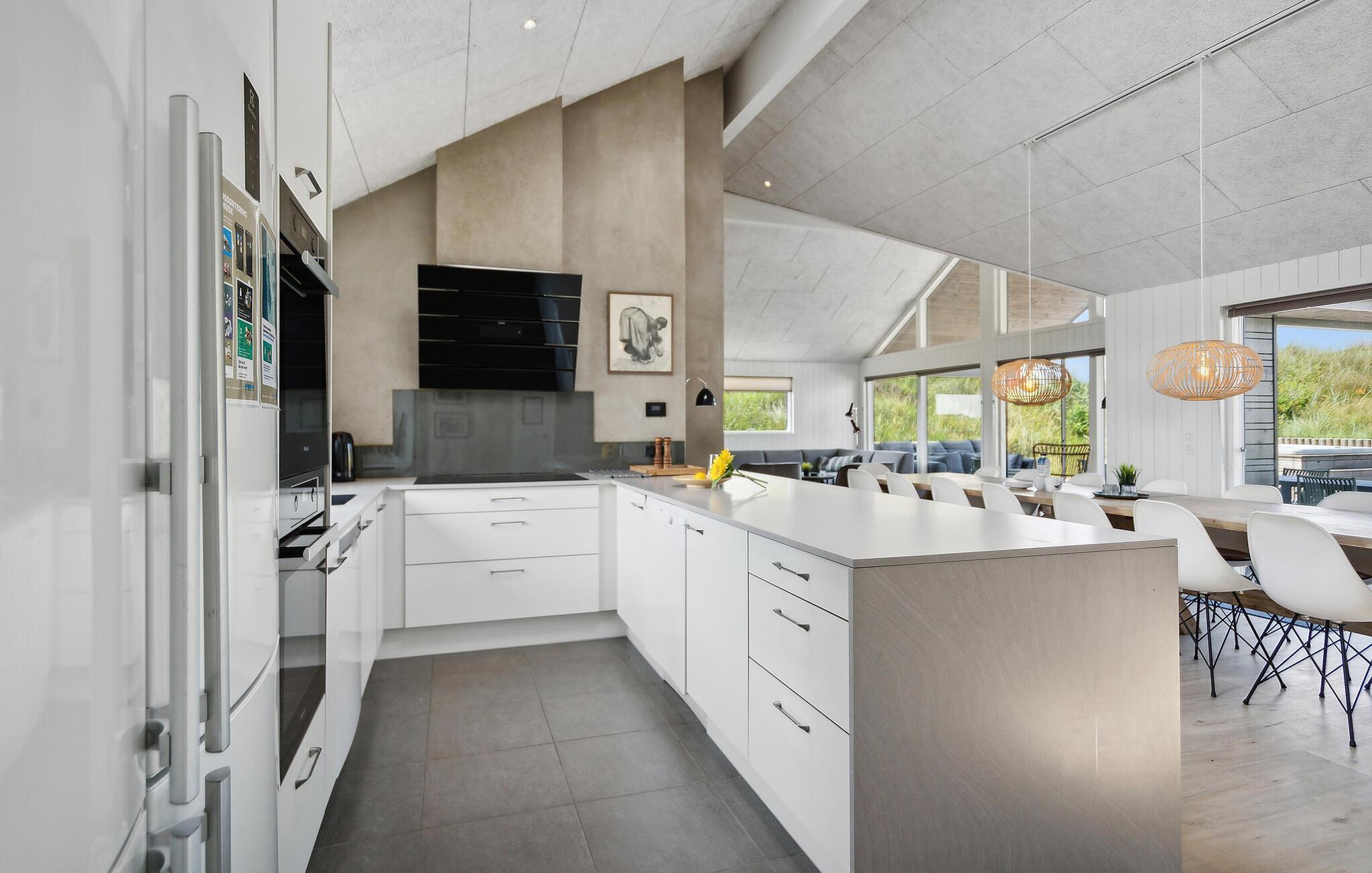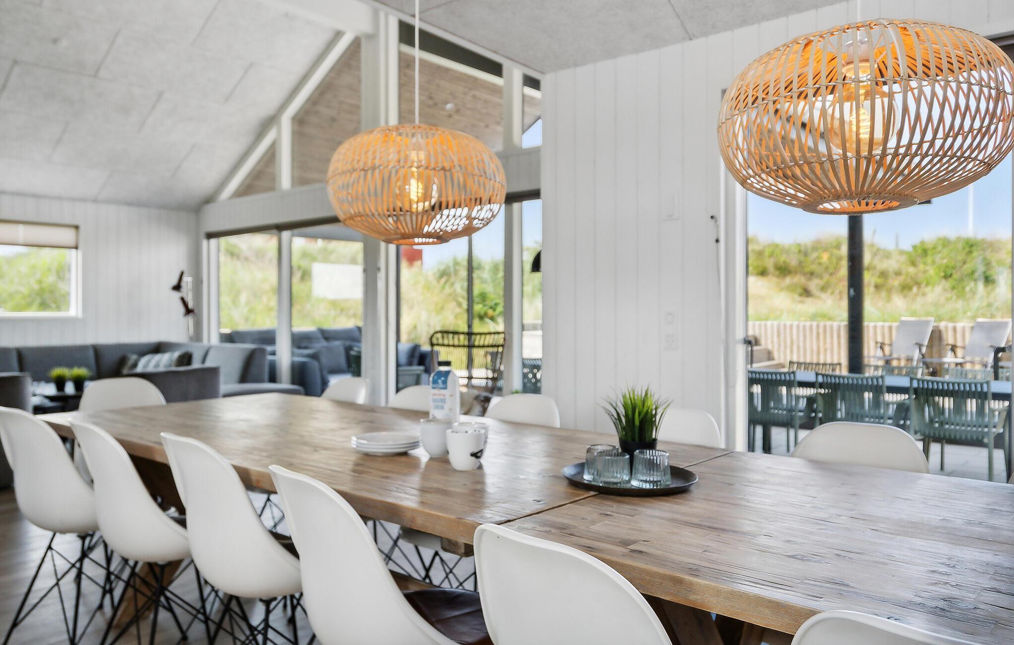 Den danske sommer kan nydes på den delvist overdækkede terrasse, mens børnene gynger og leger i sandkassen. Den udendørs standvandsspa har udsigt til klitterne, så her foregår afslapningen ud til en fantastisk kulisse.