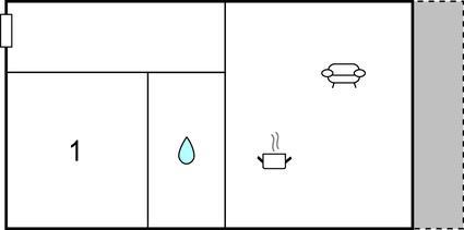 Opholdsstue/køkken - 2 Sovepladser. (Sofa, madras eller lignende).