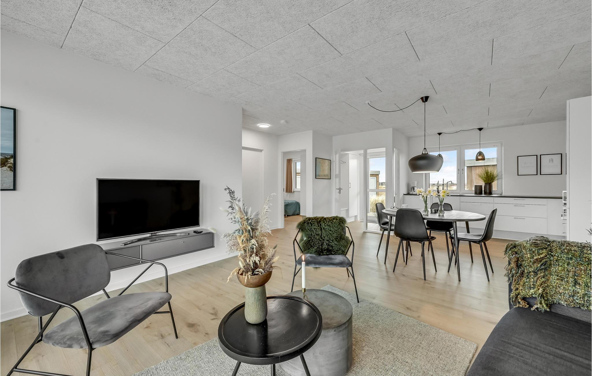 Glæd jer til nogle forrygende dage på den jyske vestkyst, hvor I kan få base i denne smarte, moderne lejlighed. Ud over en flot og stilren bolig med gode faciliteter kan I se frem til et dejligt udareal med udsigt til klitterne. Vandet ligger blot 300 meter fra hoveddøren, så I får rig mulighed for at tage en afstikker ned for at få et dyp, når I har lyst.
