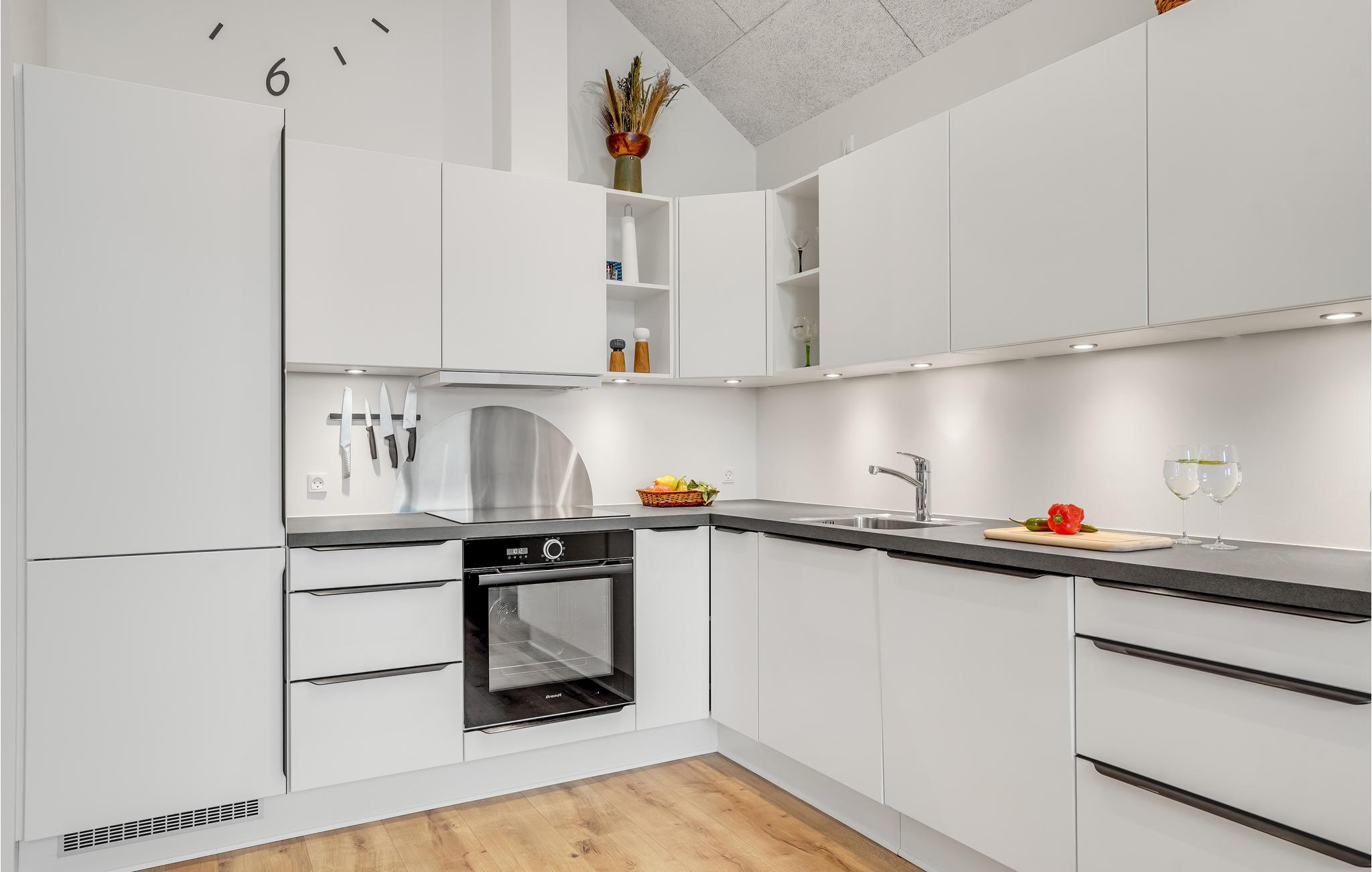Kun 300 meter fra stranden ligger denne flotte lejlighed centralt i Søndervig.