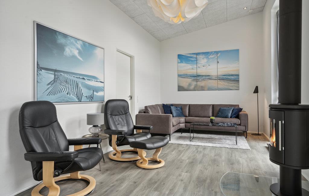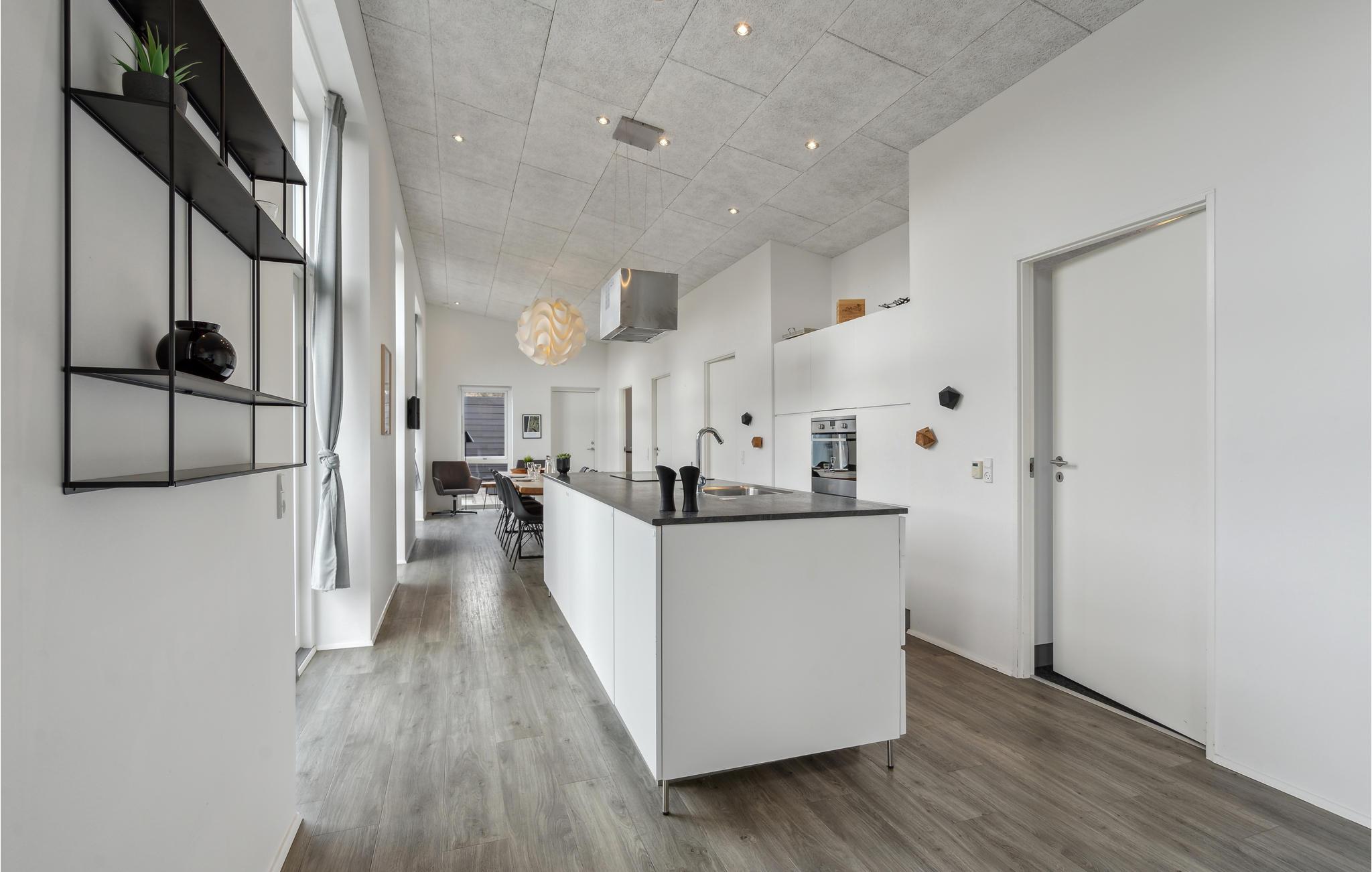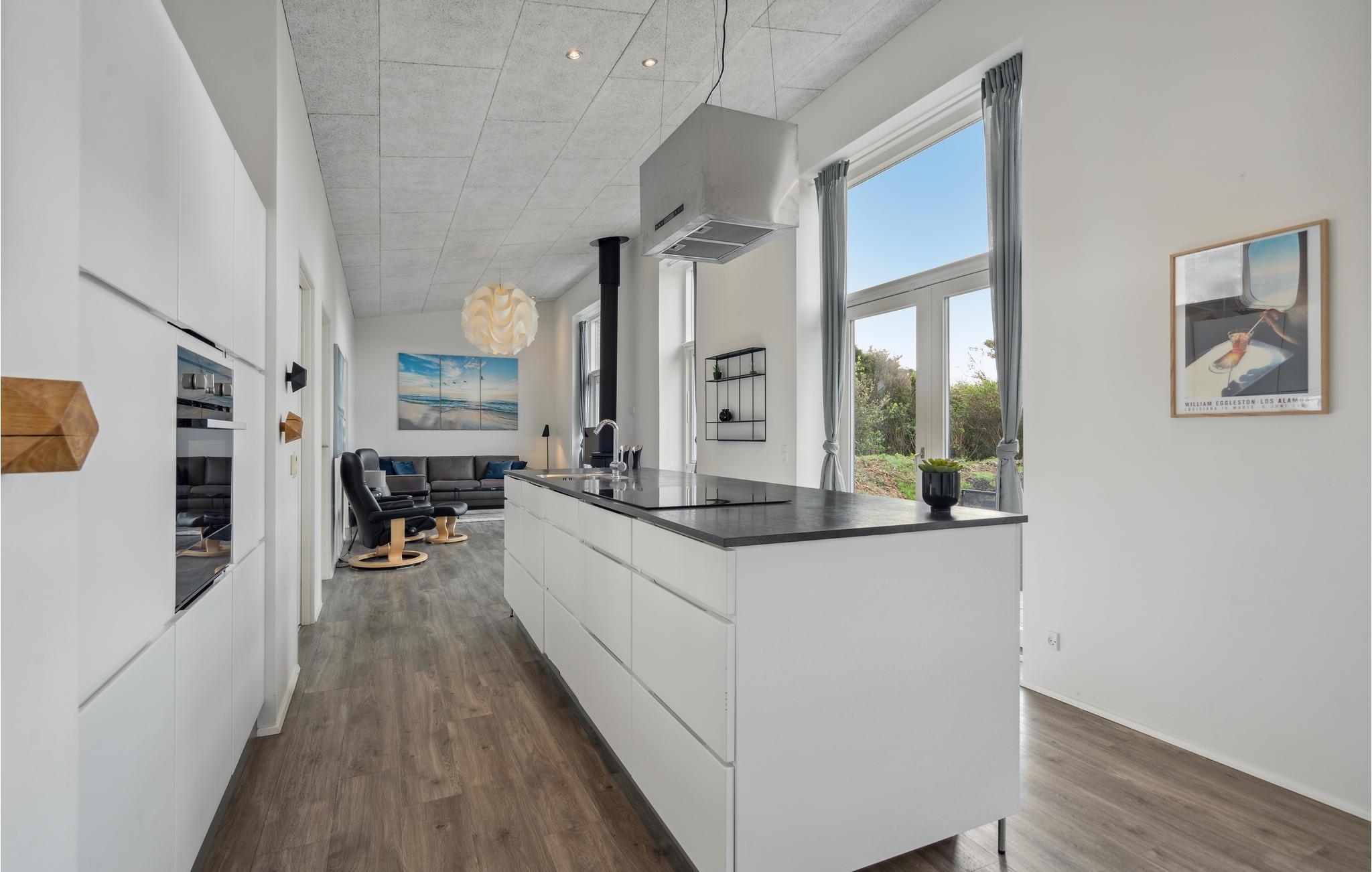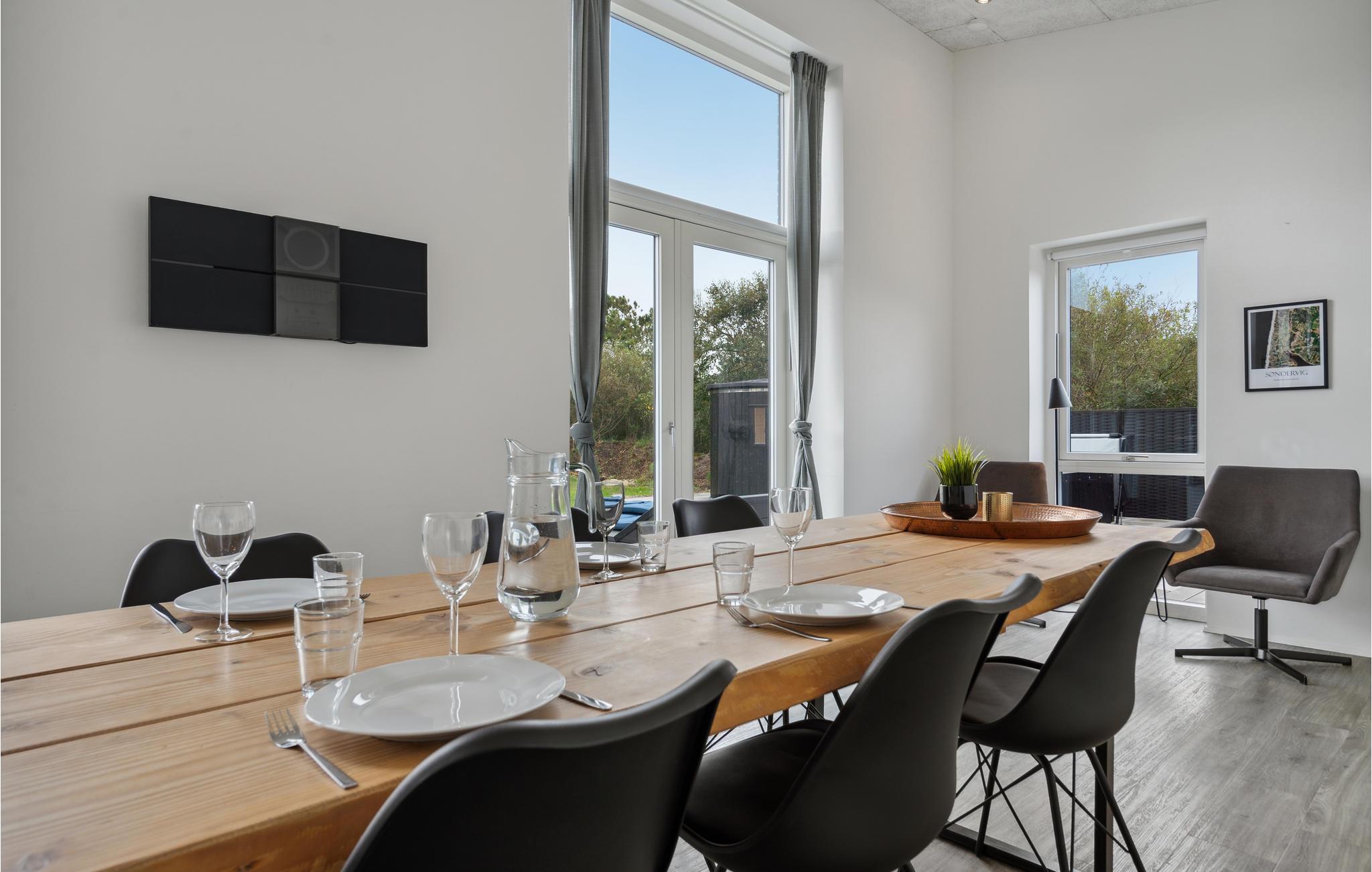 Tag til Søndervig og nyd afstressende dage sammen med familien i dette eksklusive hus, som lokker med en fremragende beliggenhed mellem fjorden og Vesterhavet. De lyse værelser inviterer indenfor med charmerende minimalisme og moderne æstetik. Her er de bedste rammer for fælles aktiviteter for den lidt større familie. Uanset om det er fælles måltider ved det lange spisebord med en smuk udsigt over naturen eller en livlig bordtennisturnering, er der ikke plads til kedsomhed på ferien her. Om aftenen kan I skabe en særlig hyggelig stemning med ild i brændeovnen. Husets udendørsområde har også meget at byde på. Slik sol på terrassen og nyd de lange, lune sommeraftener udenfor med lækre retter fra grillen. Slap af i den udendørs sauna og jacuzzi efter en dejlig feriedag ved stranden i nærheden.