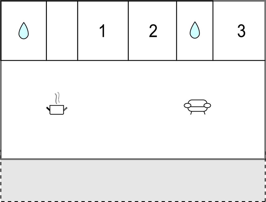 Køkkenet har v/k vand