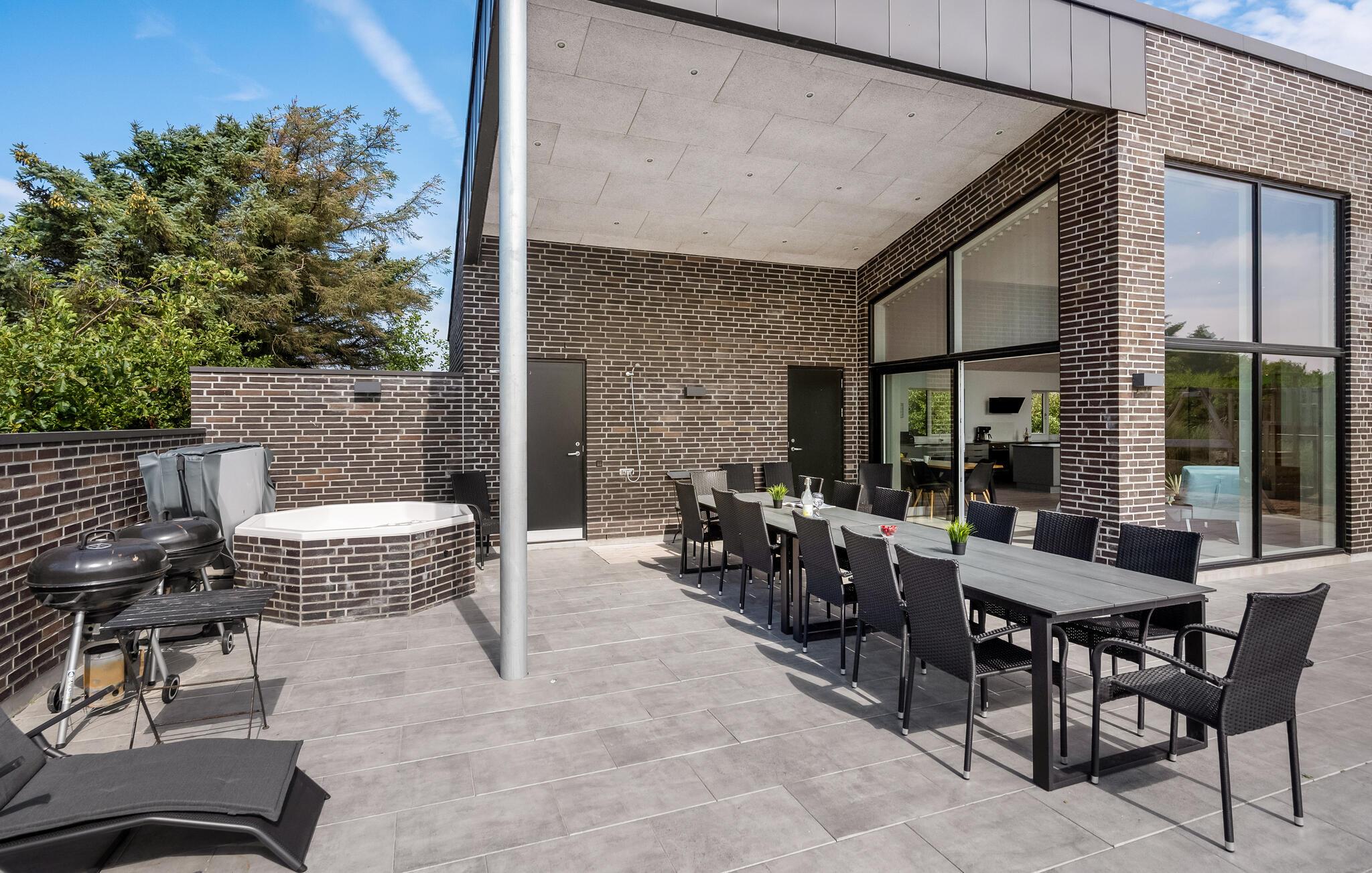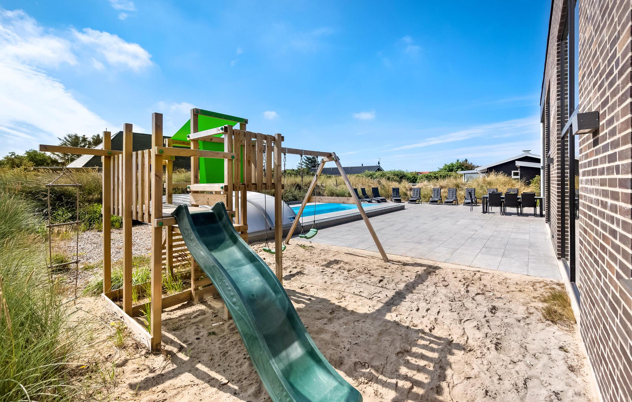 Udeområdet, omgivet af bølgende klitter, kan I nyde stemningsfulde grillmiddager, afslappende stunder i spabadet og forfriskende dukkerter i poolen. Lad børnene boltre sig på legepladsen og snakke om svundne tider over et glas vin.