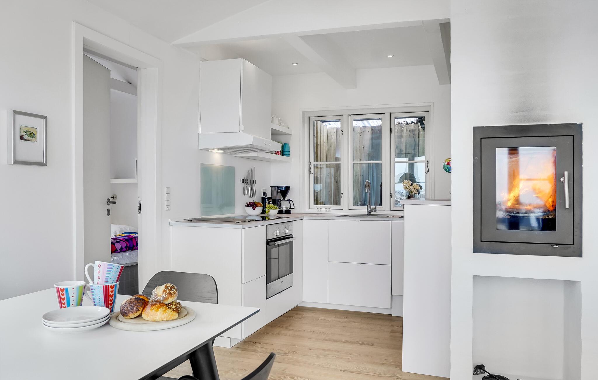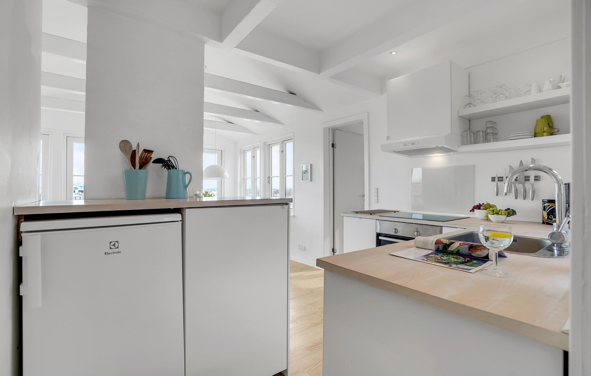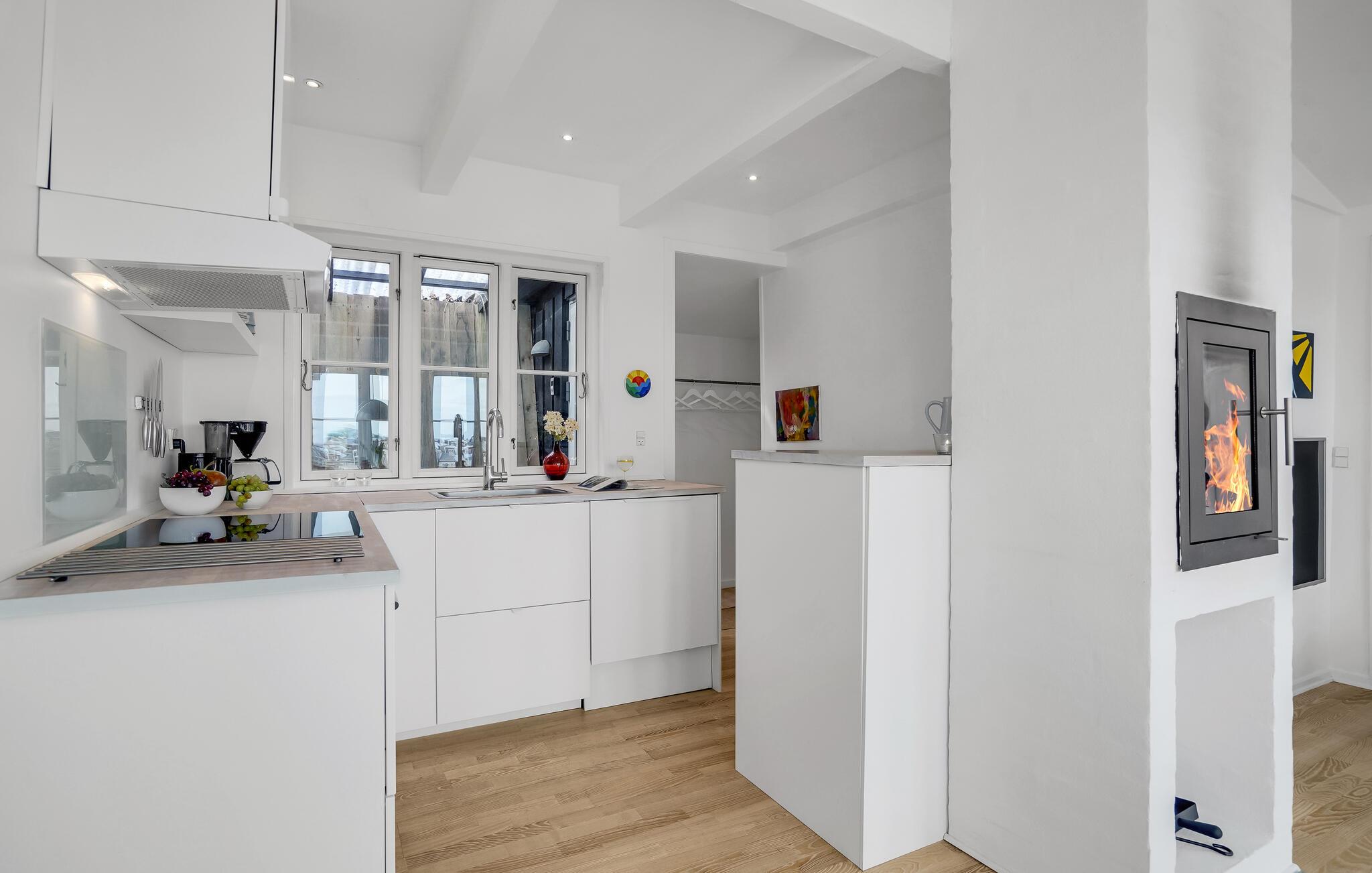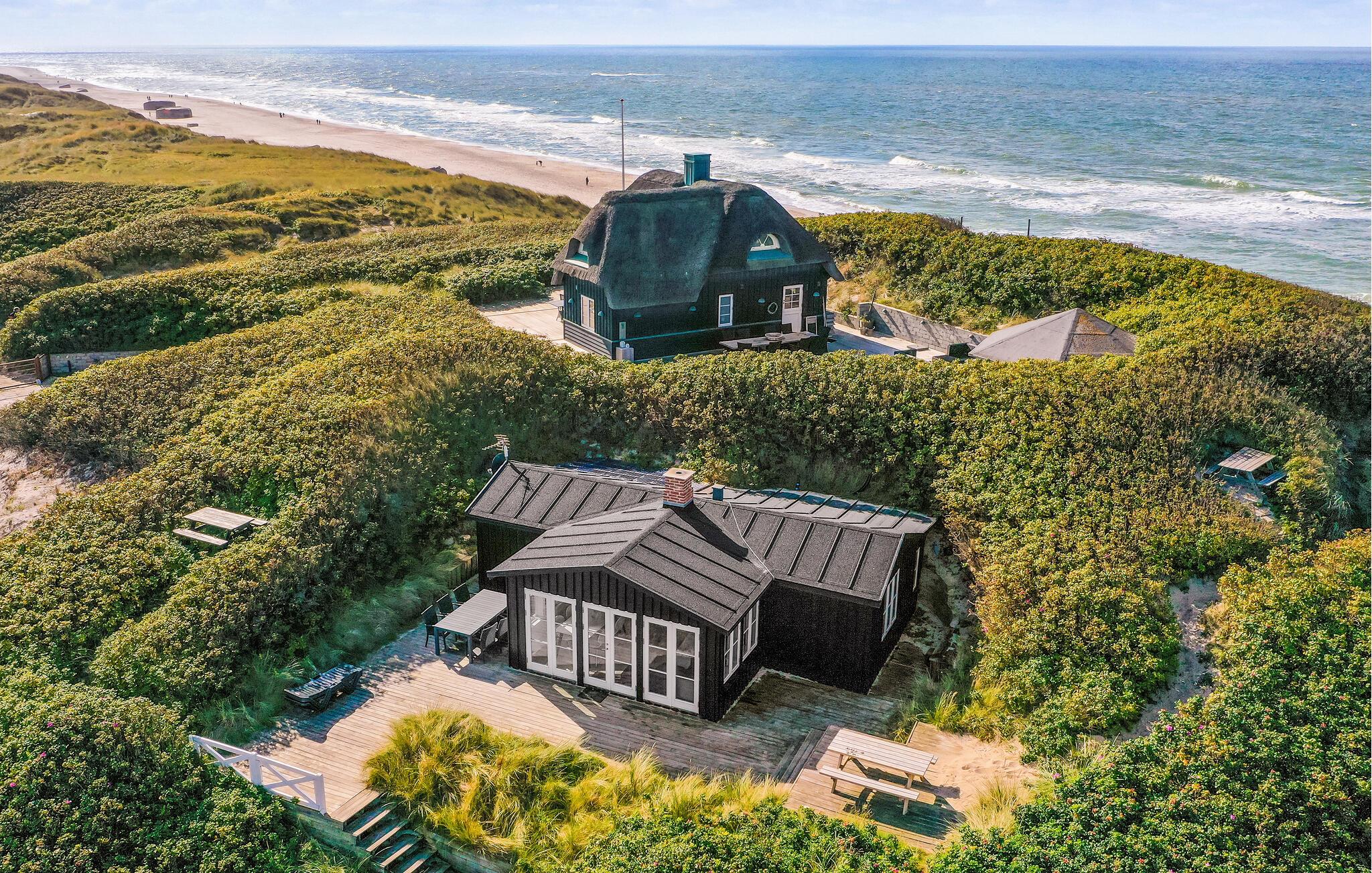 Velkommen indenfor i det lyse of indbydende sommerhus med plads til hele familien. Husets hjerte er det hyggelige køkkenalrum med åben pejs og en fantastisk udsigt over klitterne, Søndervig og Vesterhavet. Hyg jer med at lave mad, spille spil eller bare slappe af med en god bog og en knitrende ild. Om morgenen kan I træde direkte ud på den skønne terrasse og nyde morgenkaffen, mens planlægger dagens aktiviteter og udflugter. Fra terrassen og grunden kan I også beundre den storslåede panoramaudsigt over Søndervig. Lad blikket vandre og mærk roen.