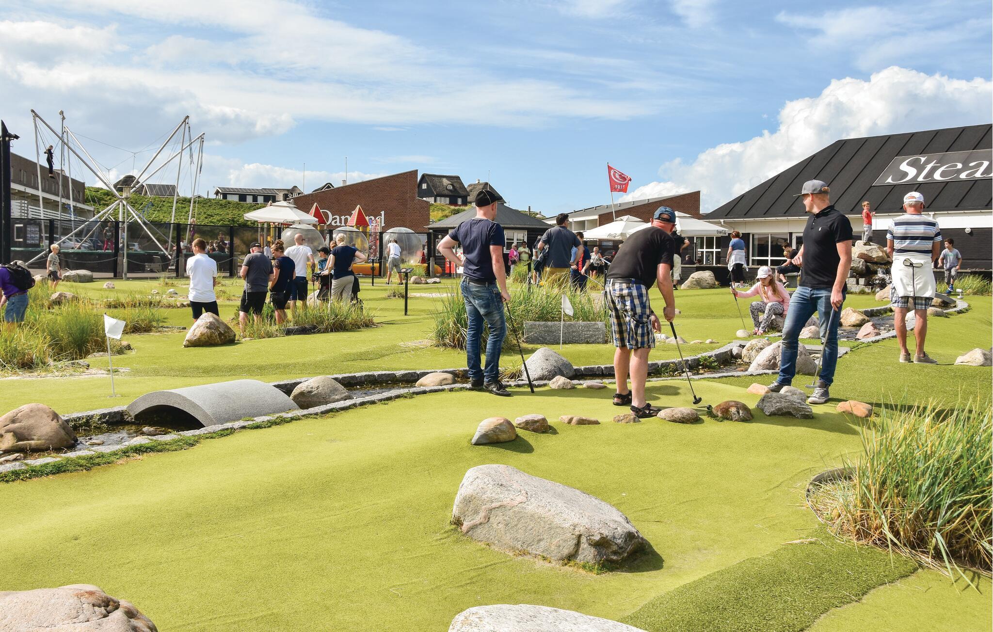 I har ikke mere end ca. 3,5 km til Søndervig i bil, men vælger I at gå eller cykle, kan I benytte de gode stiforbindelser, der er i området og dermed slippe for trafikken. I Søndervig kan I evt. hygge på en af caféerne eller restauranterne, nyde en is i skyggen, udfordre hinanden på golfbanen eller tage et spil bowling eller minigolf. I kan også vælge at køre en tur til Ringkøbing, som er kendt for de brostensbelagte gader og den hyggelige havn eller lade turen gå til fiskeribyen Hvide Sande, hvor I bl.a. kan opleve en fiskeauktion på havnen.