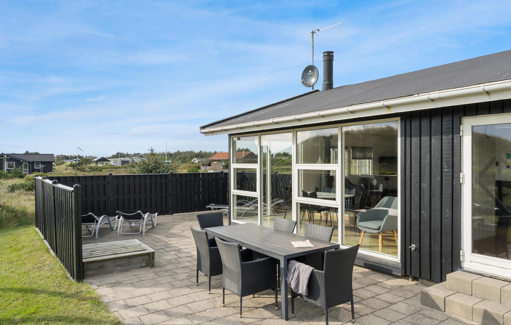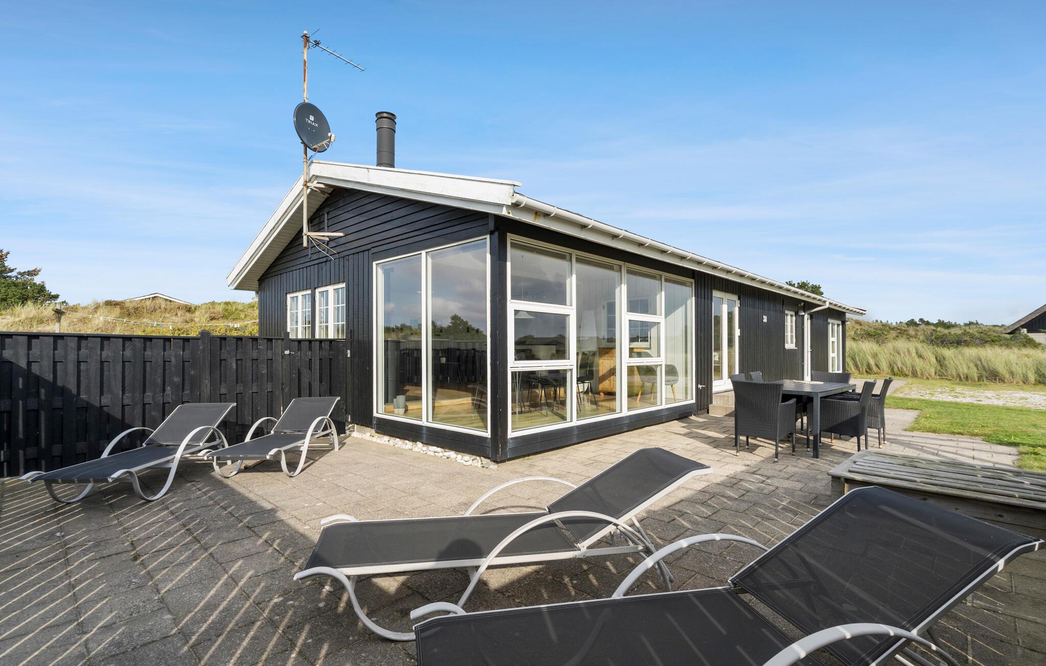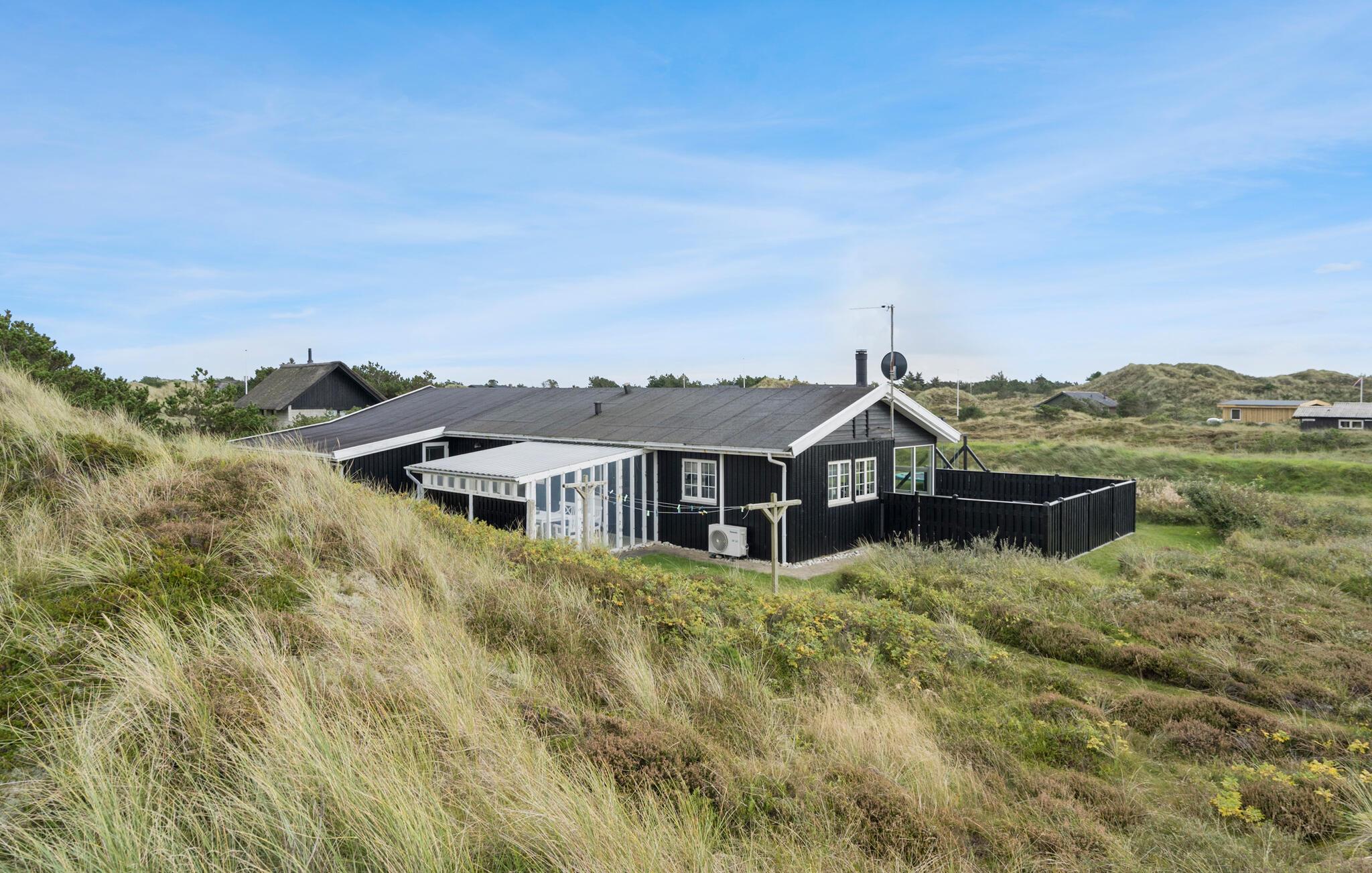 Flot sommerhus nær Vesterhavet med aktivitetsrum, sauna og spabad til afslapning og sjov.