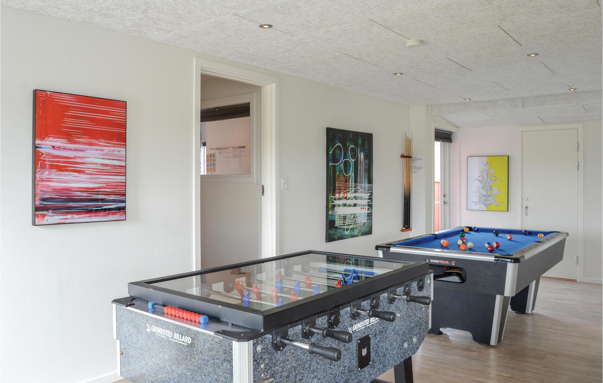 Flot og vedligeholdt sommerhus med aktivitetsmuligheder som billard og bordfodbold til mange timers underholdning. Der er også både en udestue og en overdækket terrasse til lange afslappede timer udendørs i den salte friske luft. I bor ikke langt fra den livlige lille sommerby Søndervig med mange spændende butikker. Her er både det nyeste nye indenfor mode, forskellige former for kunsthåndværk og dagligvarer. Her er også cafeer og restauranter. Et spændende sommerhus tæt ved det dejlige Vesterhav.