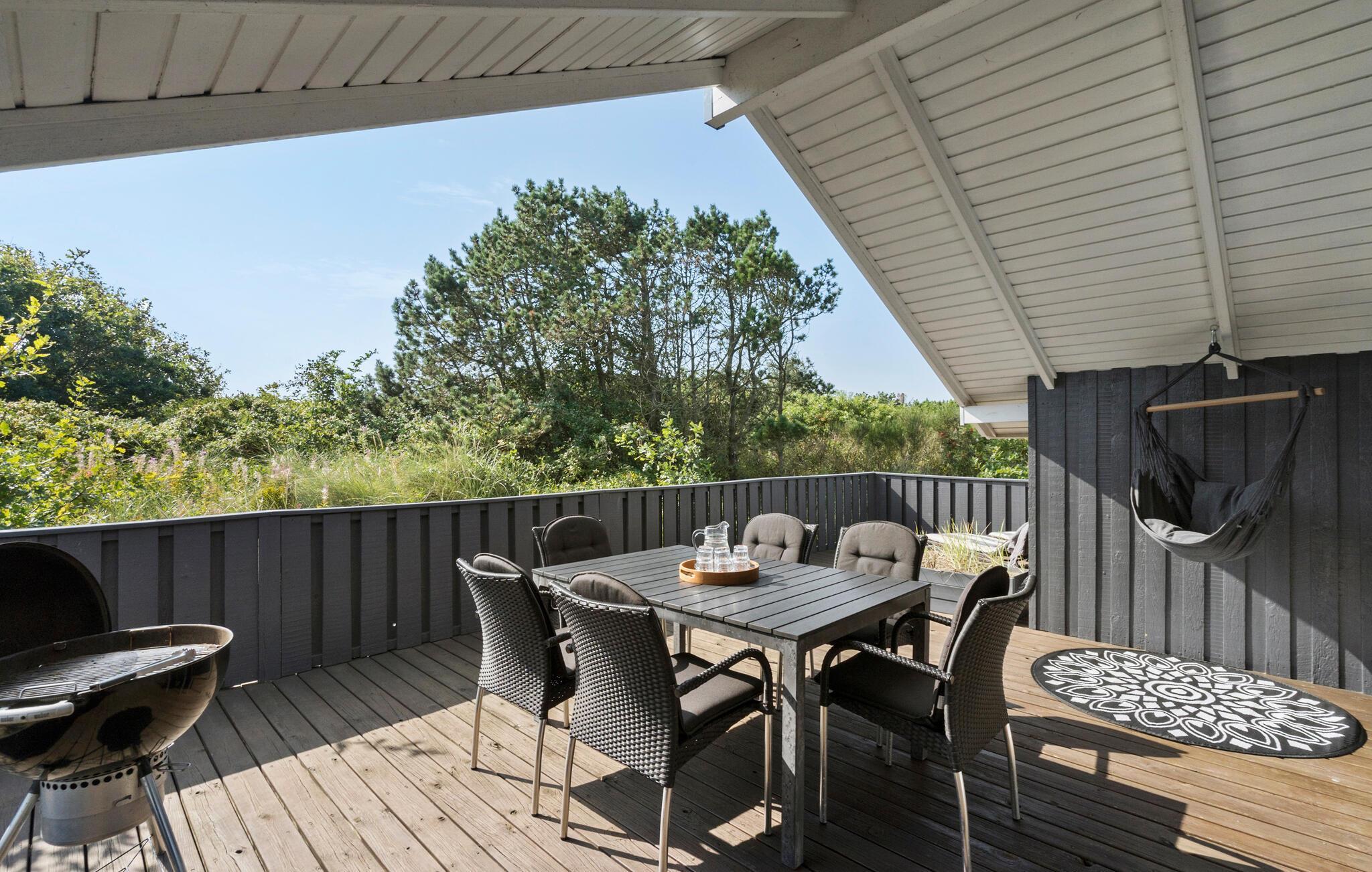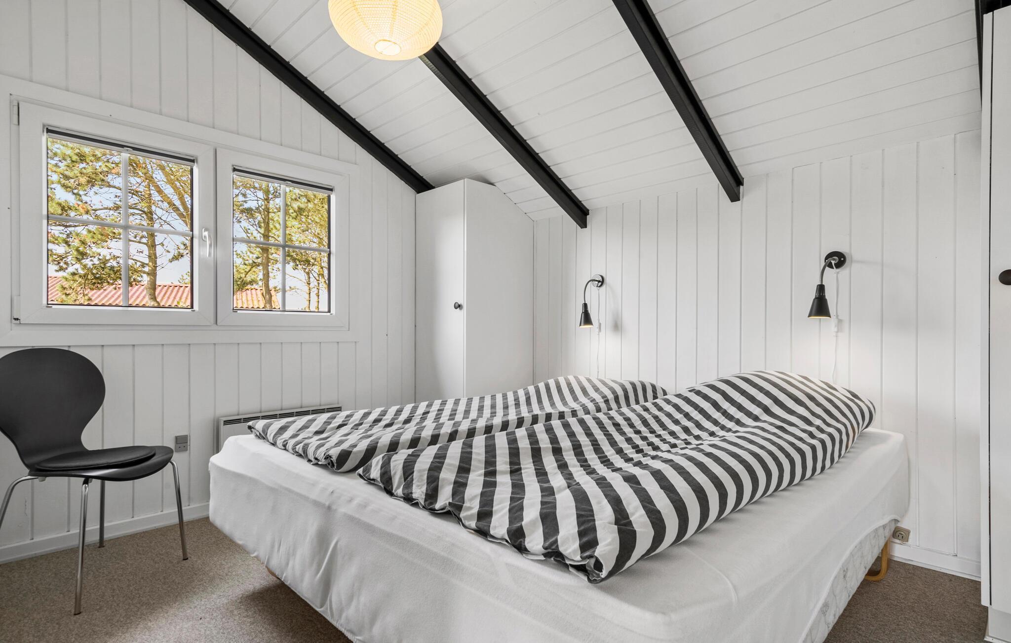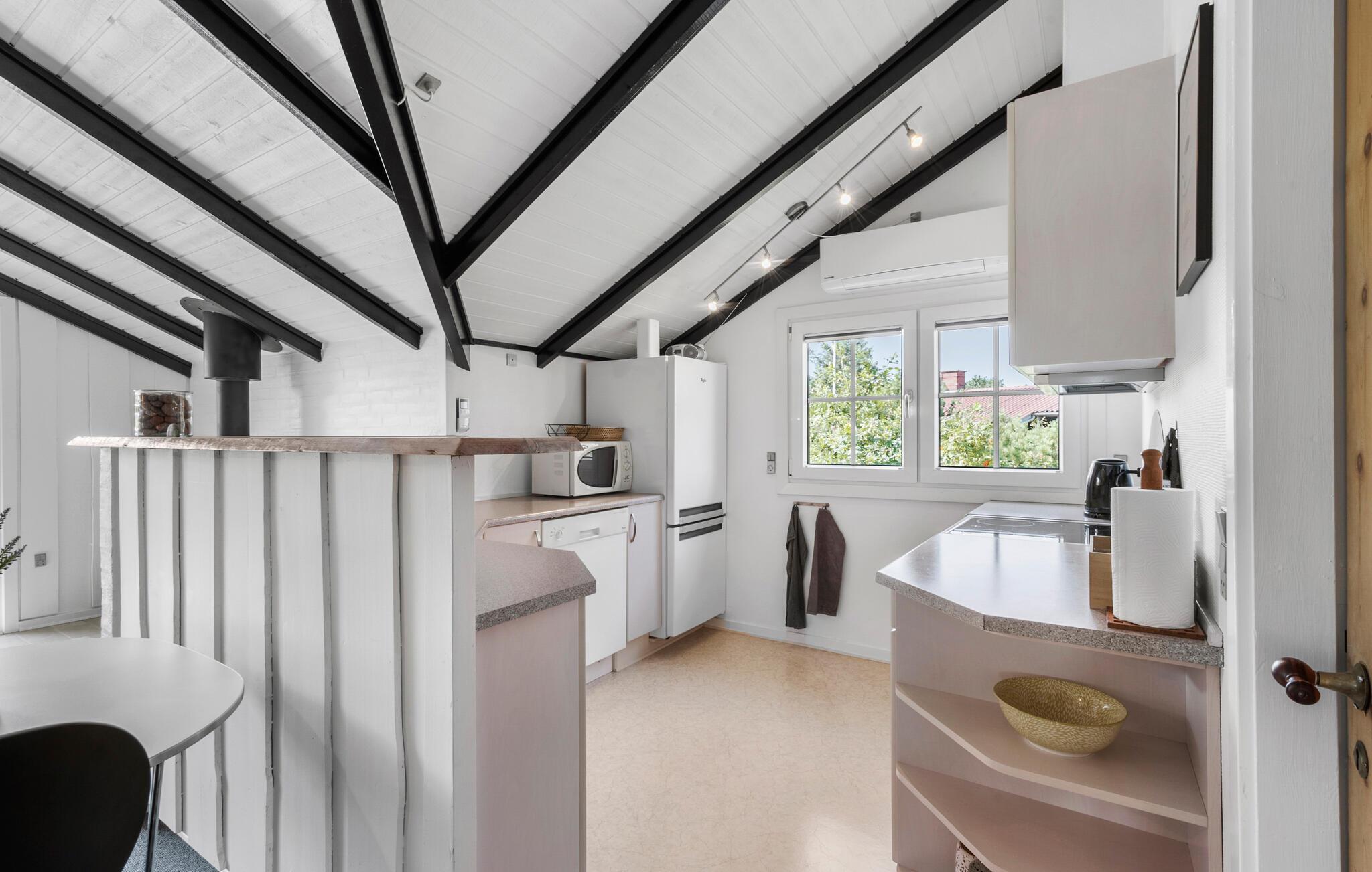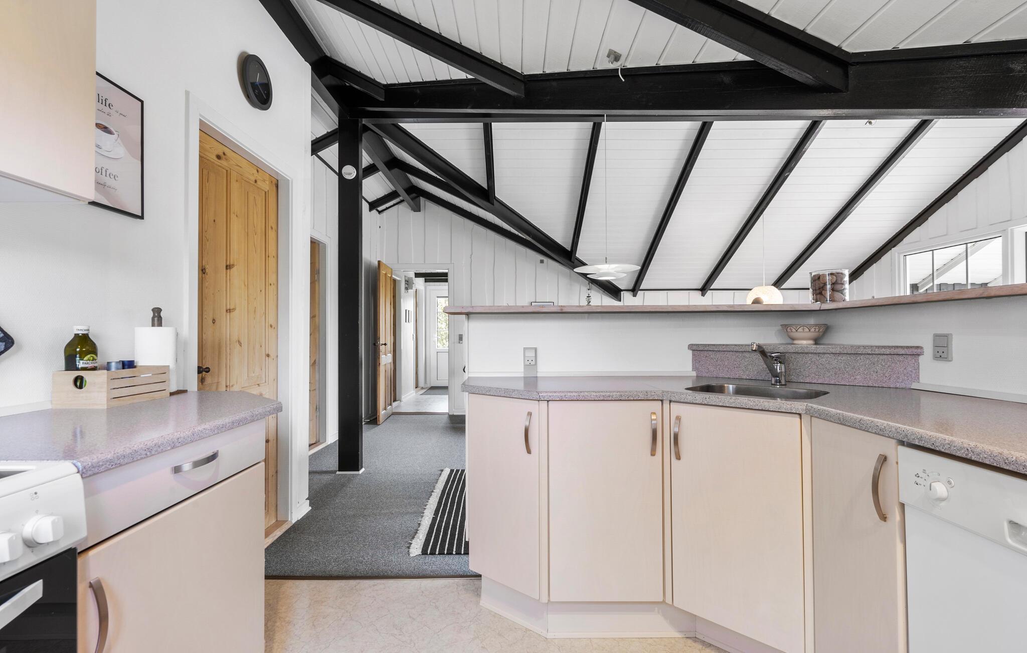 Velkommen til et herligt udgangspunkt for jeres feriedage i det vestjyske. Her får I en god ramme om de rolige stunder mellem jeres spændende udflugter i det naturskønne område. Boligen er meget familievenlig og har gode fællearealer, så både børn og voksne kan se frem til en masse hyggestunder. Begynd dagene med morgenmad i stuen og nyd udsigten til de flotte sorte bjælker under loftet, mens I lægger jer fast på dagens program. Efter en frisk gåtur ved vandet kan I tænde op i brændeovnen og mærke varmen brede sig.