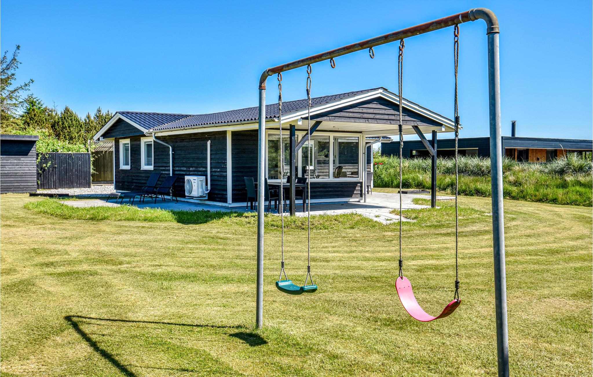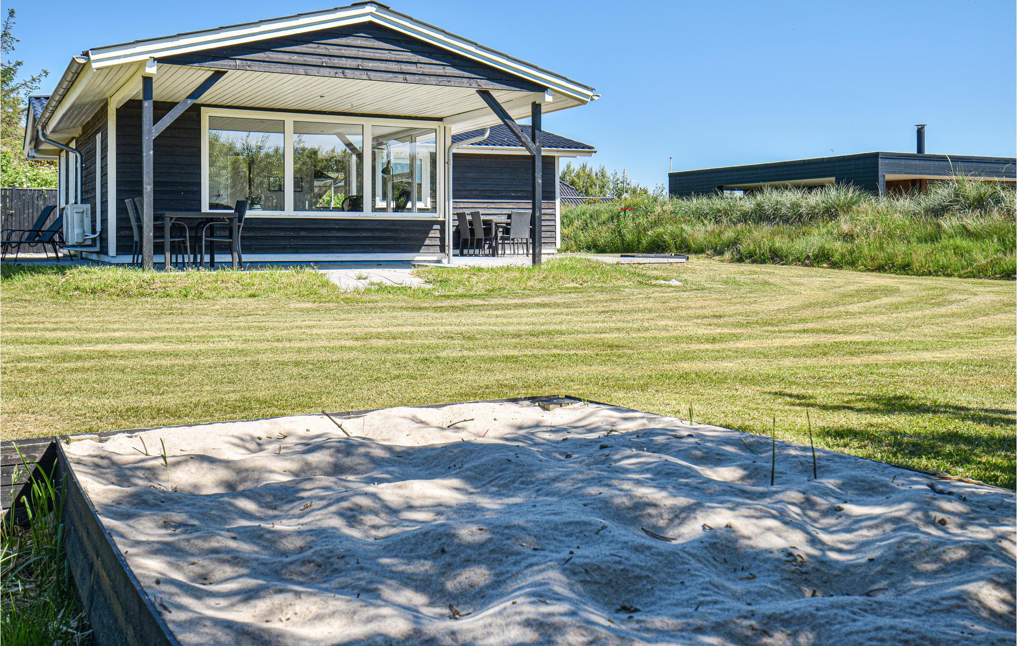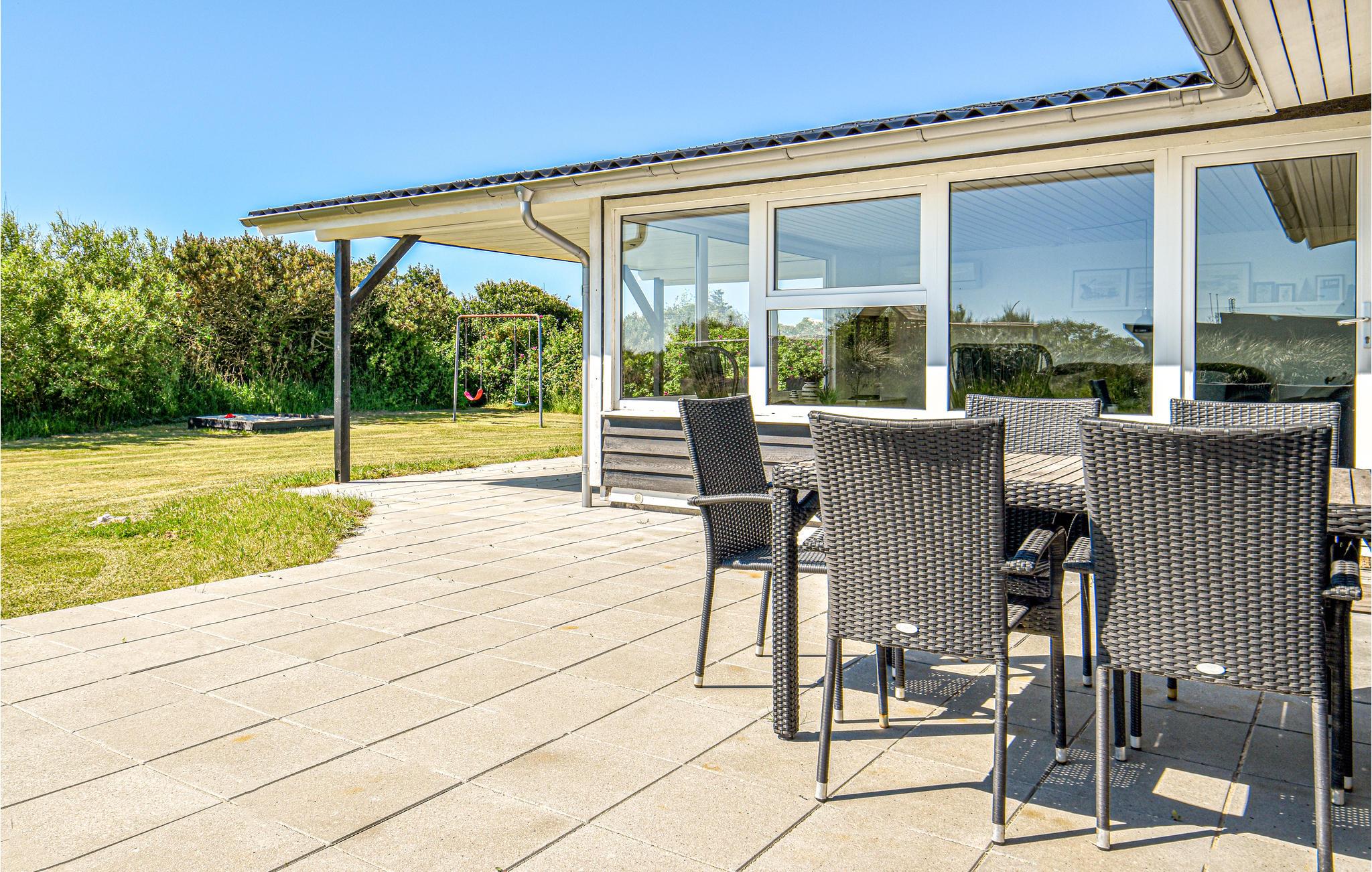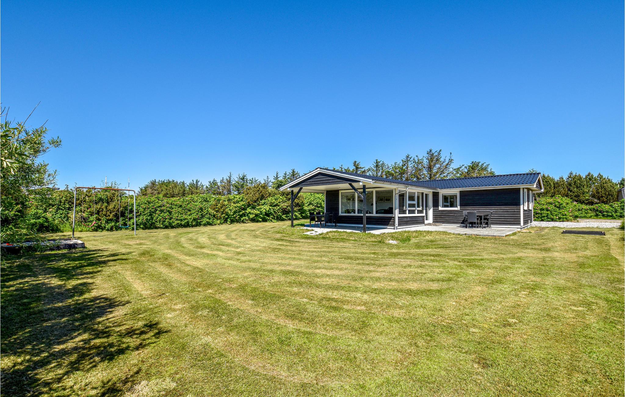 I hjertet af Søndervig ligger dette nydelige sommerhus med en stor skøn terrasse og udsigt til klitter. Huset har en stor lys stue med sofagruppe, fladskærms-tv og udgang til terrassen. I forbindelse med stuen ligger spiseafdelingen med køkken. Mod øst i huset er der soveværelser med gode senge og det samme mod vest. På den store grund er der god mulighed for boldspil og plads til leg. Glem alt om madlavning og kast jer ud i en sjov kamp med børnene, og I kan i stedet spise på en af byens mange restauranter, og forkæle jer selv med en stor is til dessert.