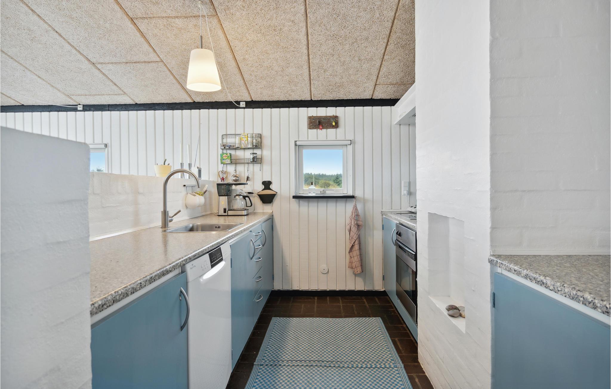 Tæt på både hav, Søndervig og Hvide Sande, og placeret i et af Danmarks bedste ferieområder, ligger dette veludstyrede sommerhus, hvor I kan holde jeres næste ferie sammen. Huset er meget velfungerende, med bl.a. et åbent køkken mod stuen og udgang til den store syd-/vestvendte terrasse, hvor der er masser af sol i vente. En god idé vil være at tage cykler med, da der er et stort stisystem i området, som fører jer rundt i landskaberne. Her får I virkelig mulighed for at slappe af i et dejligt sommerhus til en aktiv eller afslappende ferie - eller måske begge dele? Tag også på opdagelse i området ved Ringkøbing Fjord og Hvide Sande, hvor der bl.a. kan surfes.