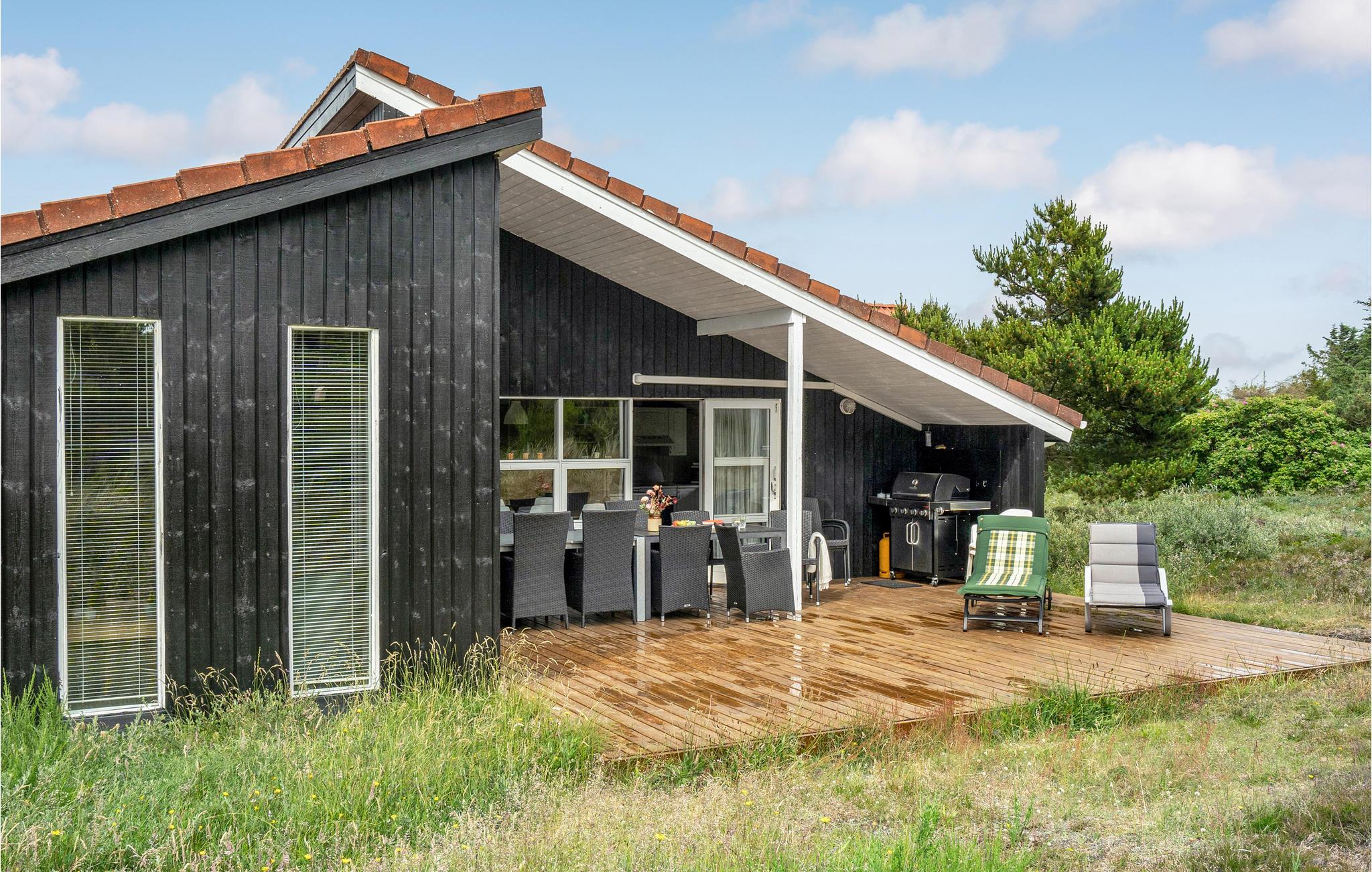 Gå ud på den kuperede klitgrund, og oplev de mange kroge omkring huset, hvor I kan få læ fra vinden. Slap af på en af de to skønne terrasser, eller tilbered lækre måltider i udekøkkenet. Lad jeres børn lege på legetårnet med gynge, rutsjebane og klatreelementer, mens I nyder den rolige beliggenhed for enden af den lille stikvej.