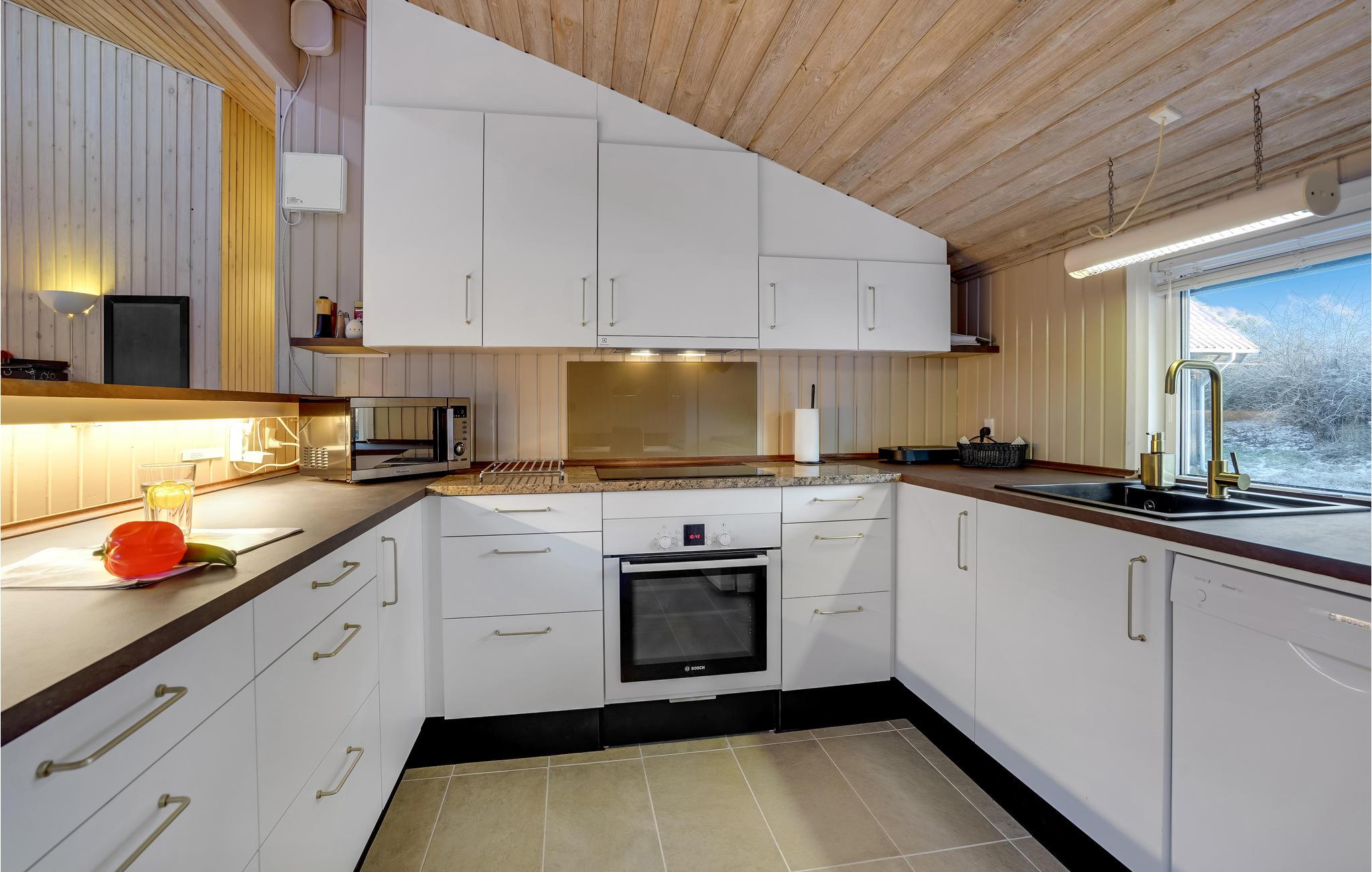 Træd ind i det lyse og åbne indendørsområde, og lad jer begejstre af den varme træstil og de høje lofter. Slap af i sofaerne, og tilbring hyggelige aftener ved brændeovnen. Benyt den åbne spiseafdeling til lange måltider. Her er der også plads til en større gruppe. Det veludstyrede køkken byder på god arbejdsplads og har direkte adgang til en af terrasserne. Glæd jer til aktivitetsområdet med billardbord, en hyggelig siddeplads og tv, og forkæl jer selv med wellness i saunaen og spabadet.